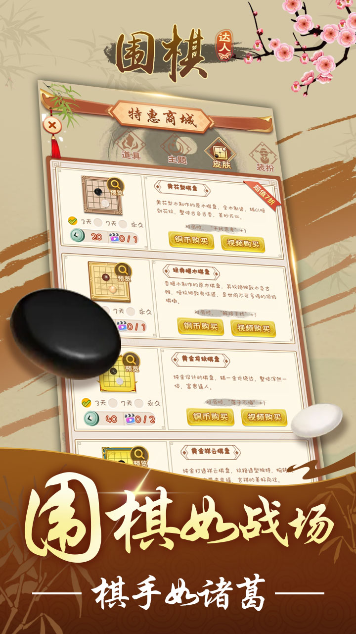 围棋棋盘由纵横各19条等距离、垂直交叉的平行线构成,形成361个交叉点,简称为“点”。棋盘上还标有9个小圆点,称作“星”,中央的星又称“天元”。棋子分黑白两色,形状为扁圆形体。正式比赛棋子的数量为黑、白各180枚。对局双方各执一色棋子,空枰开局,黑先白后,交替着一子于棋盘的点上。棋子下定后,不再向其他点移动。轮流下子是双方的权利,但允许任何一方放弃下子权而使用虚着。一个棋子在棋盘上,与它直线紧邻的空点是这个棋子的“气”。直线紧邻的点上如果有同色棋子存在,这些棋子就相互连接成一个不可分割的整体。直线紧邻的点上如果有异色棋子存在,此处的气便不存在。棋子如失去所有的气,就不能在棋盘上存在。