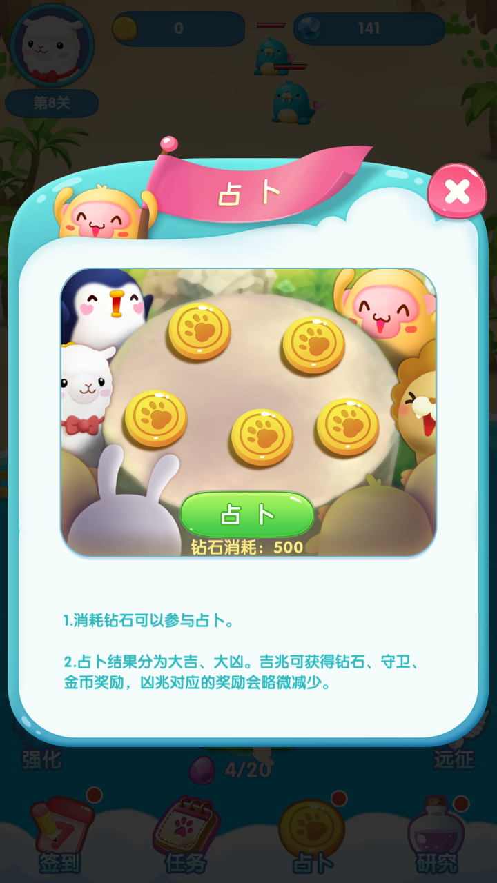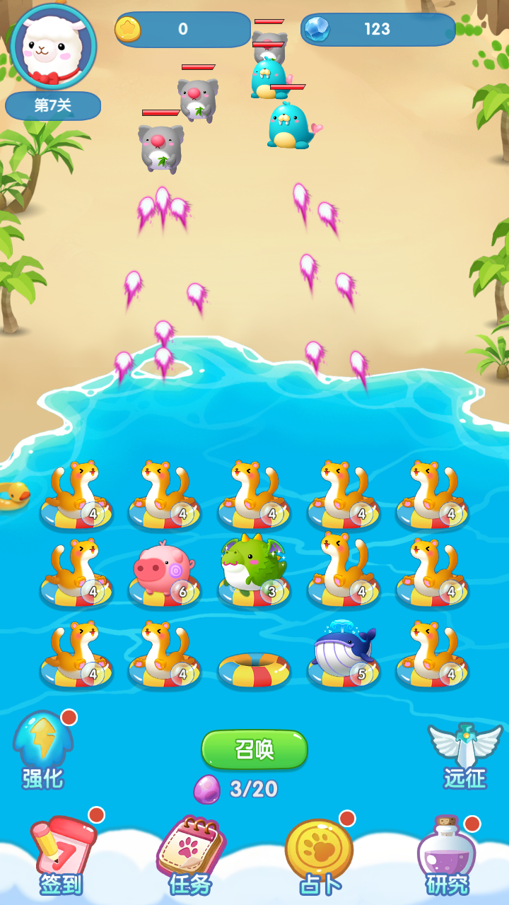 小小萌宠是一款休闲合成塔防类游戏,点击召唤小萌宠合成更高阶的宠物,构建强大的萌宠战队抵御怪兽的入侵,顺利击败怪兽大军就能进入到下一个关卡开启全新的挑战,趣味十足的萌宠塔防战斗一触即发,花式通关奖励等你来拿,心动不如行动吧!