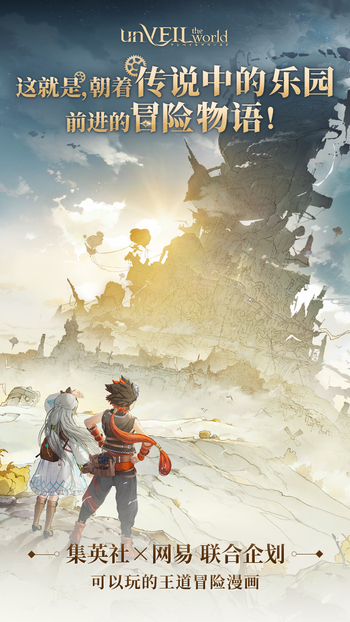 unVEIL the world是由网易游戏和SHUEISHA GAMES共同研发的一款面向iOS和安卓平台的策略冒险活剧RPG游戏。角色设计由日本知名漫画家・插画师出水明日香亲自操刀。她曾在《周刊少年Jump》连载热门漫画《约定的梦幻岛》(白井海芋原作、出水明日香作画/集英社)中负责作画。全新冒险之旅敬请期待!