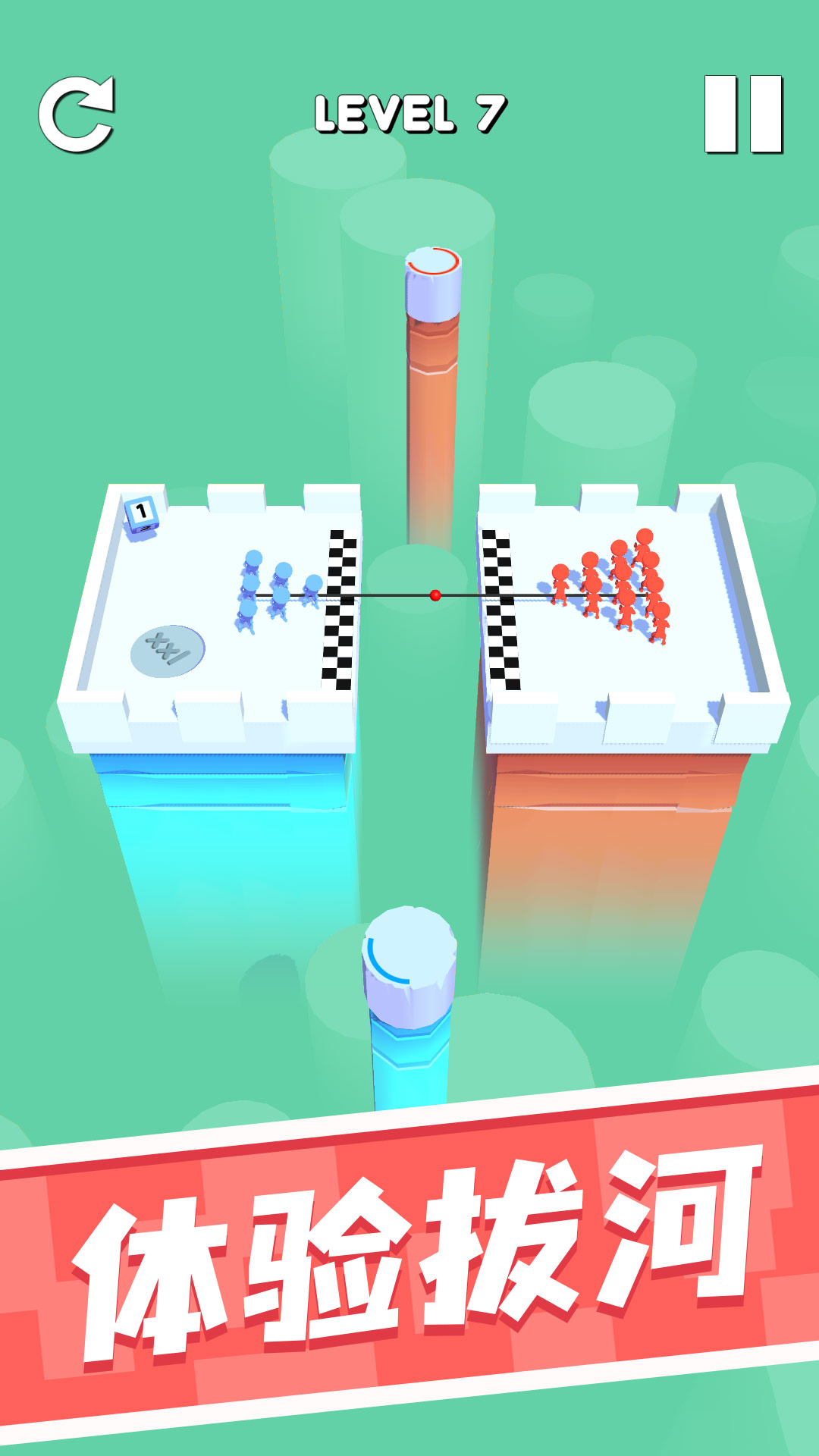 《加把劲呀》是一款十分有趣的超休闲游戏,玩家需要通过投骰子和射击骰子,来增加友军拔河的人数,否则就会失败。骰子拔河战是一项十分热血刺激的项目,毕竟落败方会被狠狠拖下悬崖丧失性命!