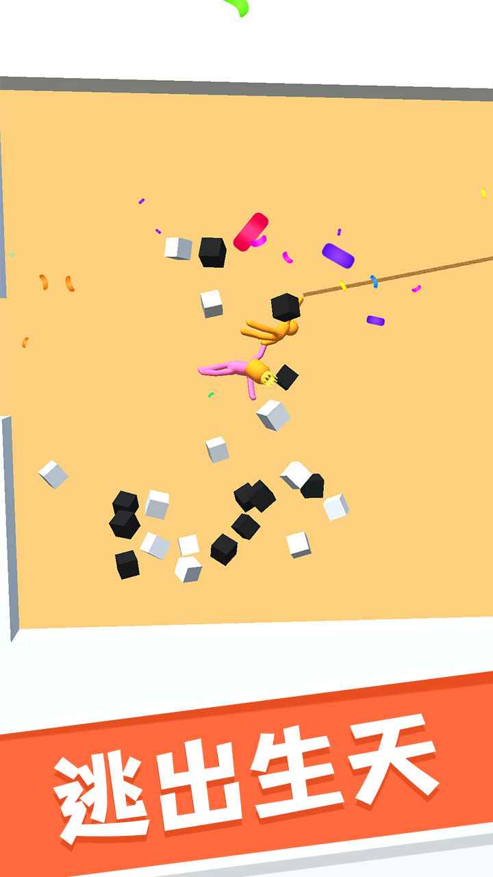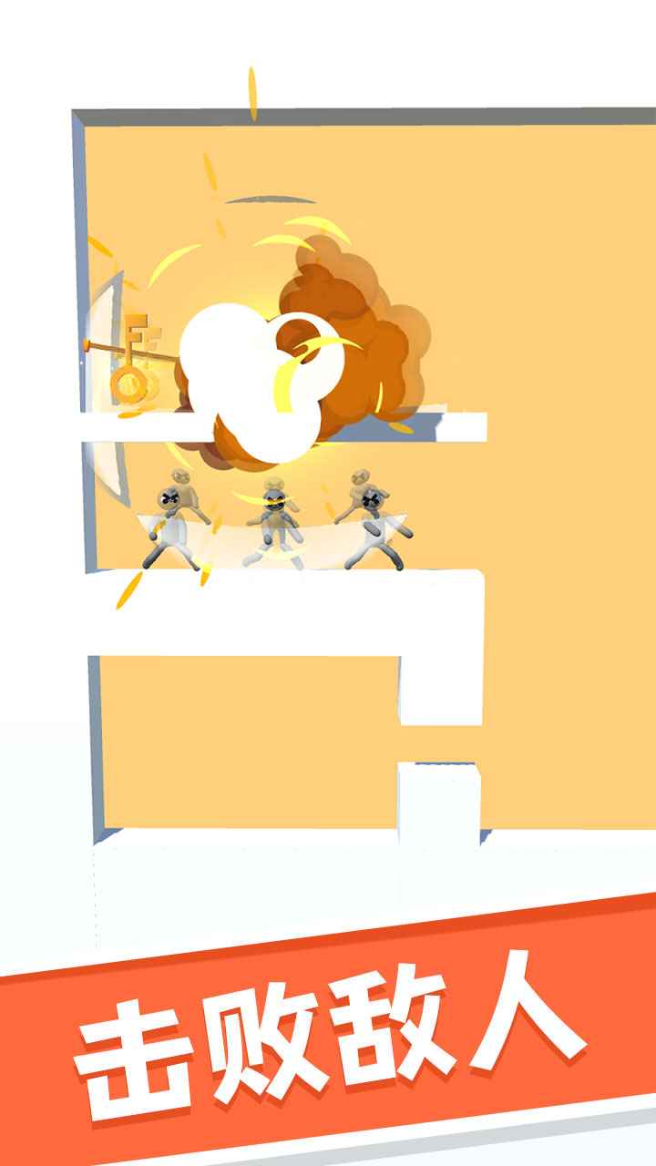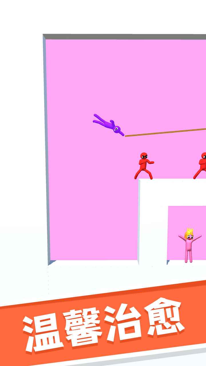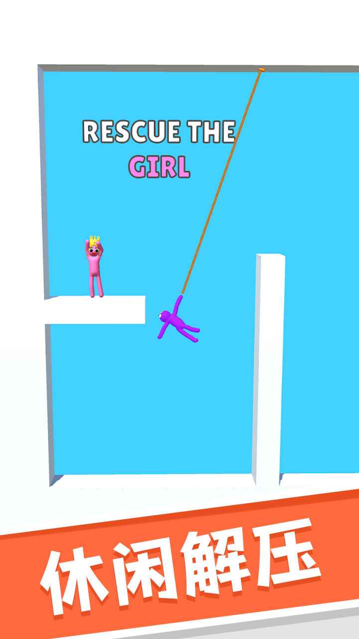 《猛男向前冲》是一款救援益智闯关类游戏,玩家控制的角色可以往墙壁上发射钩锁来实现移动,从这边的平台移动到人质所在的平台,而想要离开还必须拥有钥匙,不能让坏人抓到。