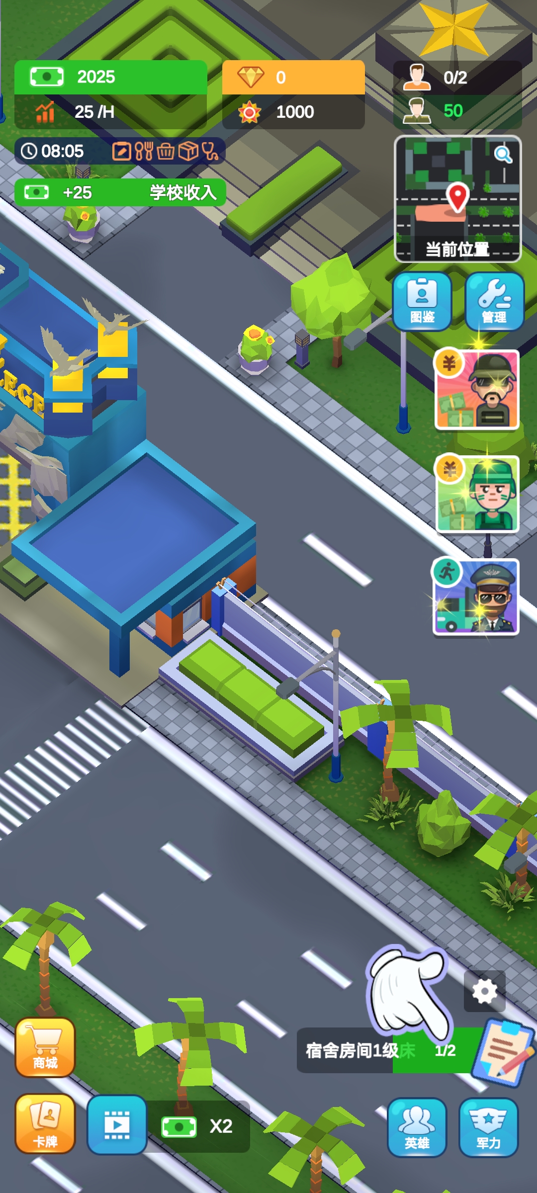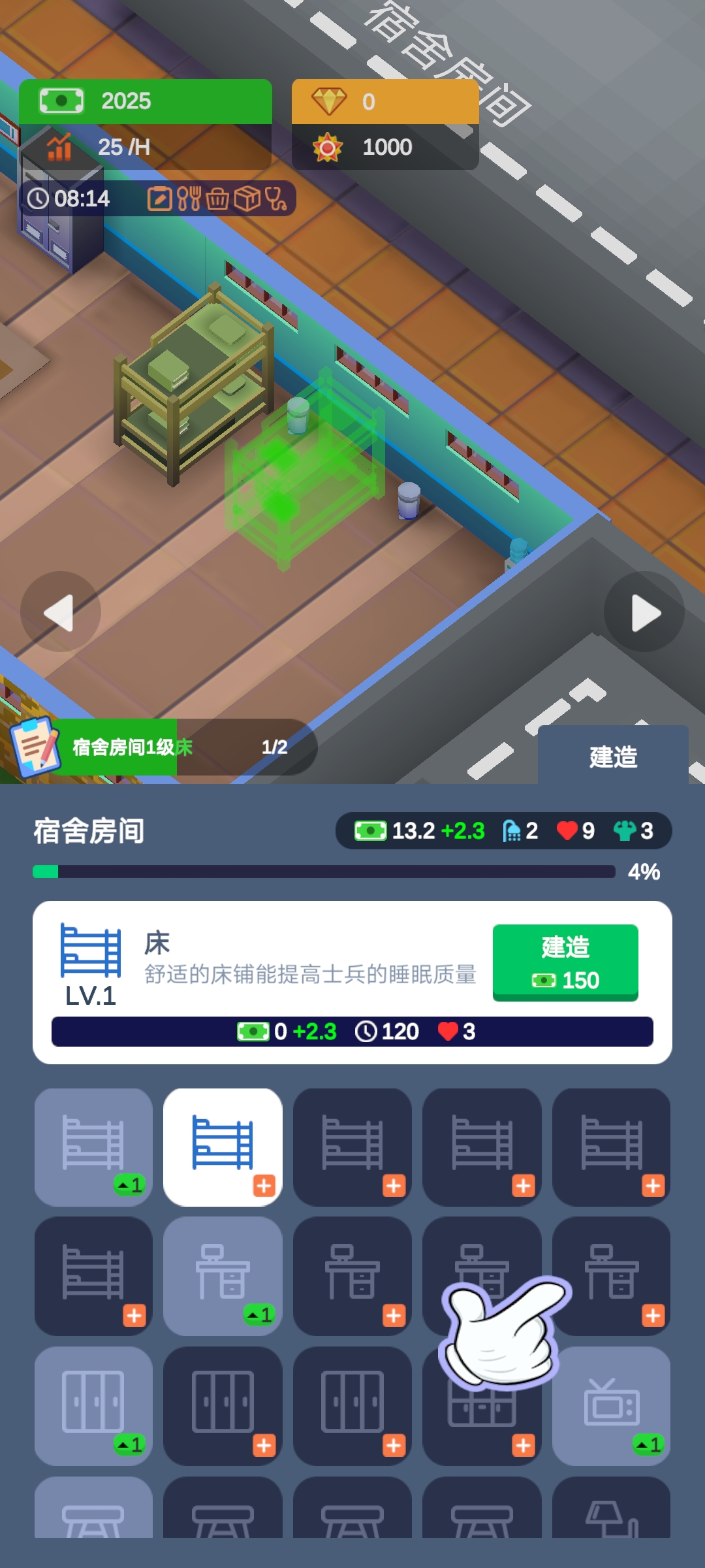 随着基地中的军事训练逐步进展,你将获得不菲的收入并扩张营地。你可以升级所有训练区的数值、速度、容量和队列规模。虽然过程如同过山车般起伏跌宕,但懒惰的学员必将遭到淘汰-你会爱上发展你的军事基地!