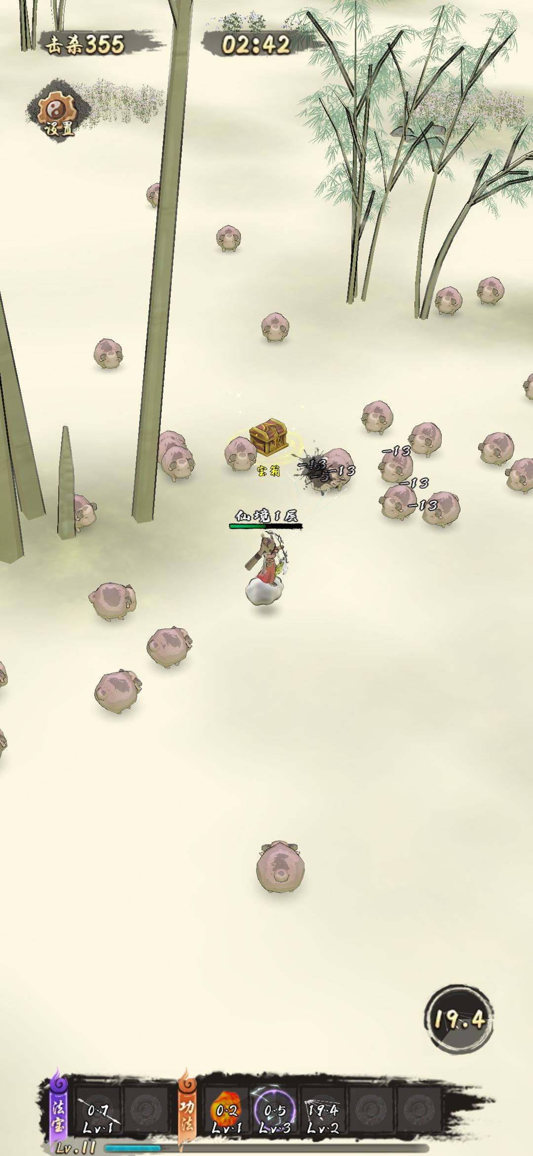 一款roguelike修仙游戏,击杀小怪获取经验,妖丹,道具等。每次升级都会有可选的技能,合理的搭配不同的技能才能更好的通关游戏。