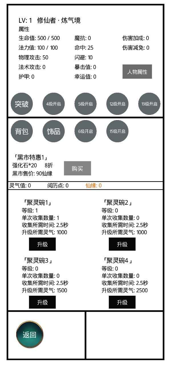 「游戏玩法介绍」一款修仙文字游戏,没有华丽绚彩的界面,只有最朴实的玩法,野外打怪,历练,天赋,突破境界,还可与其他仙友进行切磋,求学问道,获取九州仙诀,一步步成为修仙界的强者。