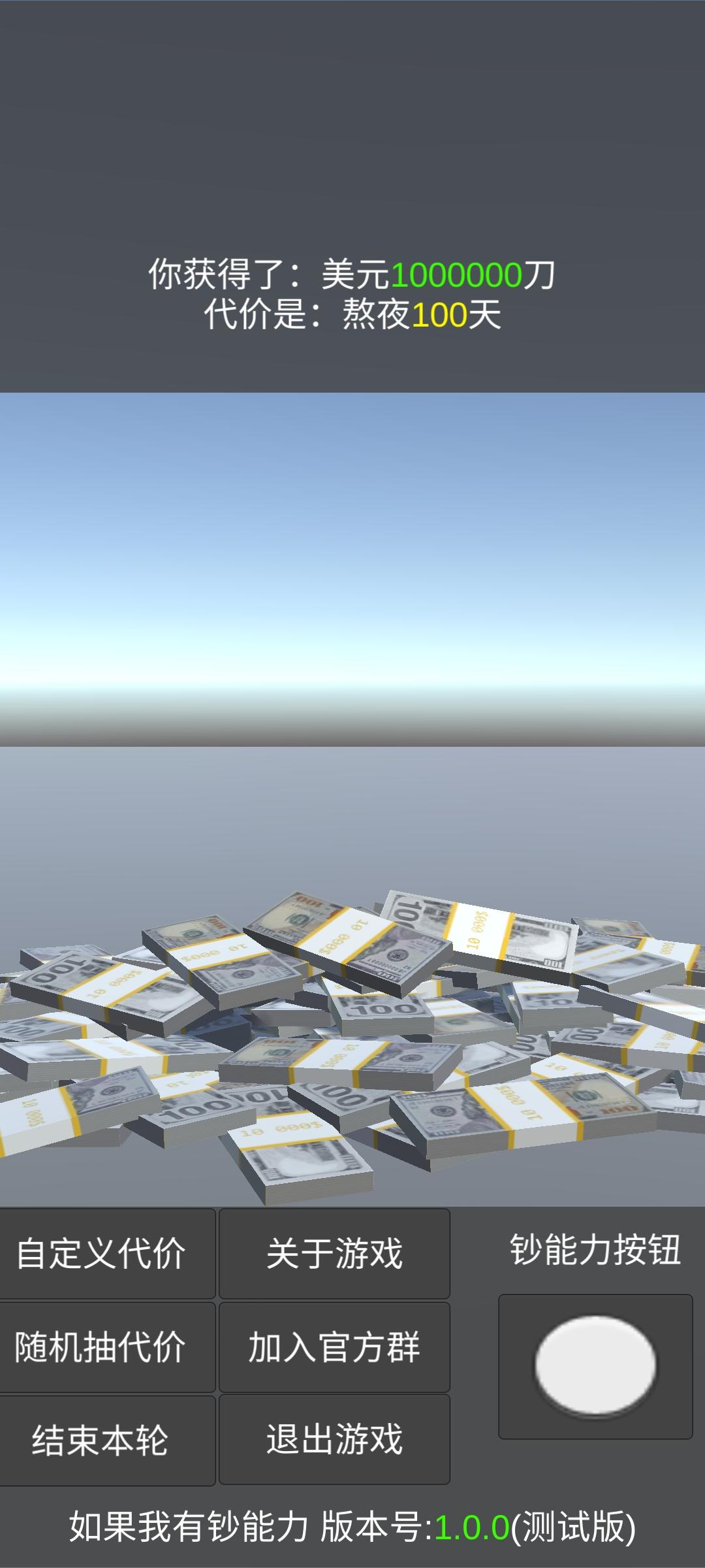 《如果我有钞能力》是一款以解压为玩法的休闲游戏,在这里你可以通过钞能力按钮成为亿万富翁,但是同时你需要付出对等的代价!