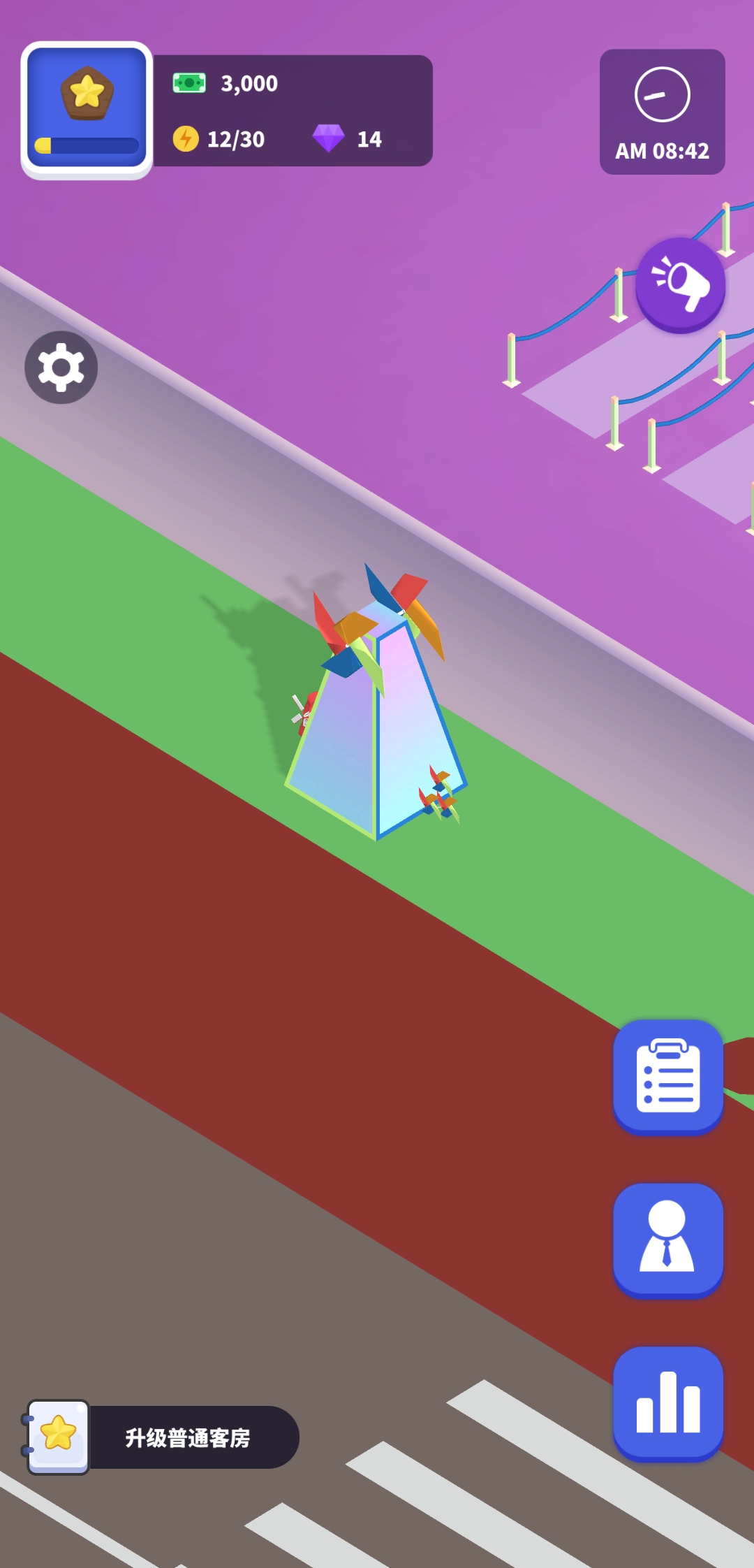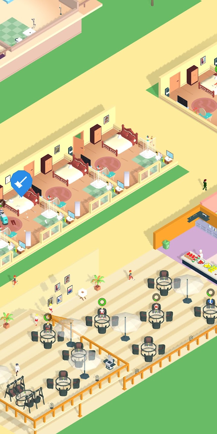 玩家可以组建自己的团队,聘请经理一起帮助经营业务,也可以聘请各种员工为客人服务,例如聘请优秀的厨师为您的访客烹制美味佳肴,聘请保安为游客准备热气球等等.