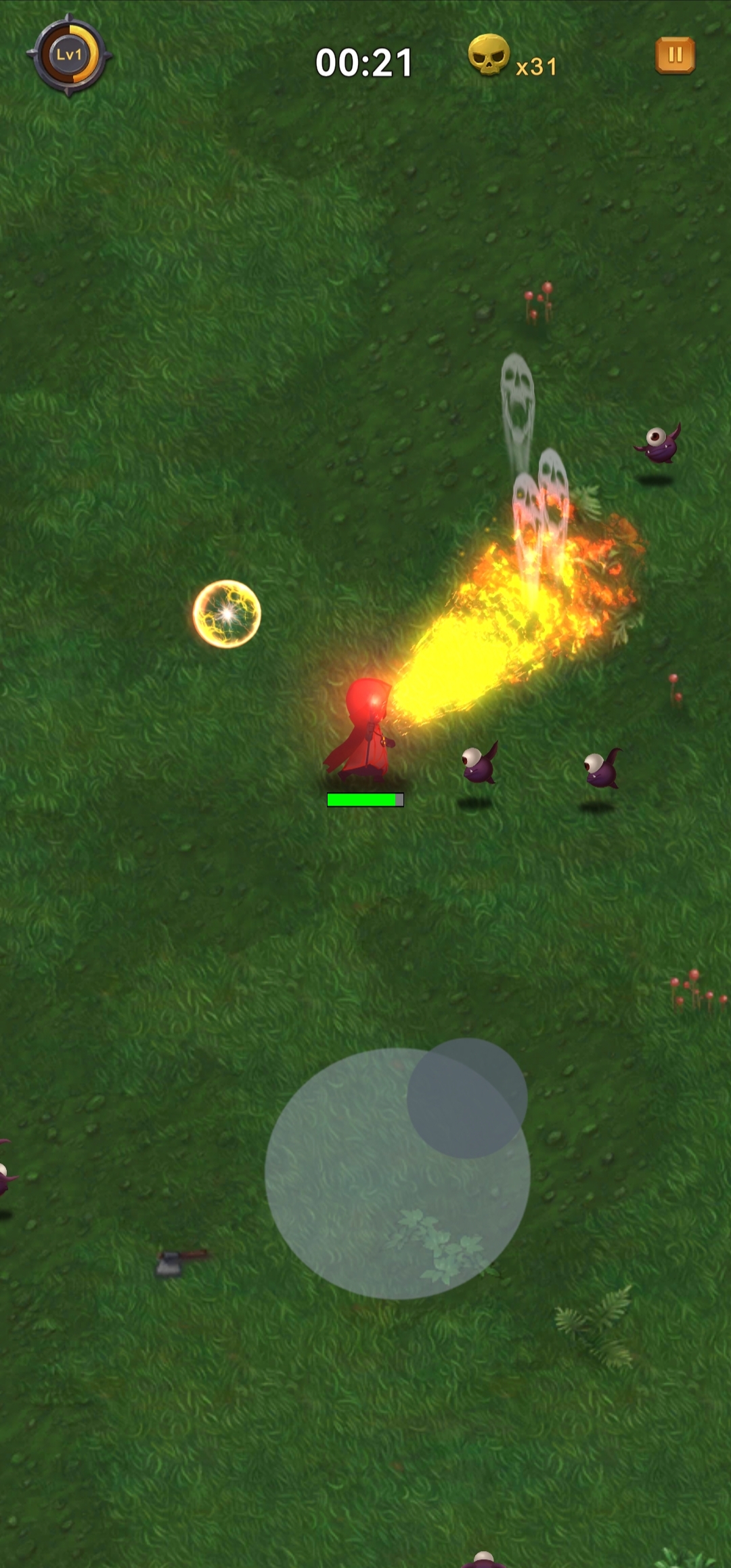无数怪物从四面八方追逐你的英雄。你需要控制英雄逃离怪物。如果你在逃跑过程中升级,你将获得随机强大的技能。逃跑并杀死。试试你能活多久。