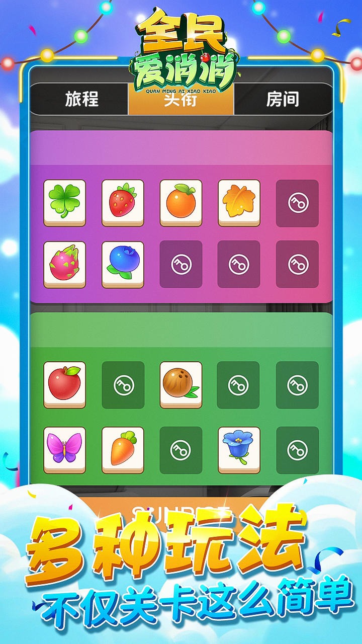 《全民爱消消》是一款休闲益智消除小游戏,在这款游戏中玩家需要将三个相同牌面的方块连在一起就可以消除它们,消除模式还是经典三消类型,但是融入了许多创意性的消除规则,能够带来更有趣的挑战过程,合成方法与市场上的消除游戏有很大不同,其带来的消除体验令人耳目一新;好玩并且容易上手,轻松休闲,随时随地放松心情,画风简约风格简单,清新又舒适 ,游戏玩法简单,老少皆宜。