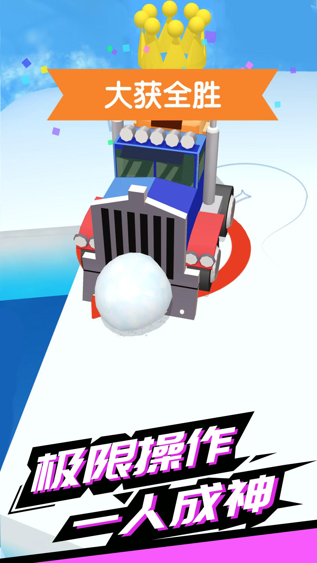 《雪球碰碰战》是一款滚雪球游戏,在游戏中你可以操纵雪球车铲雪将雪球滚大,然后将雪球滚向对手,把对手撞到海里,争取最终的胜利。游戏小技巧