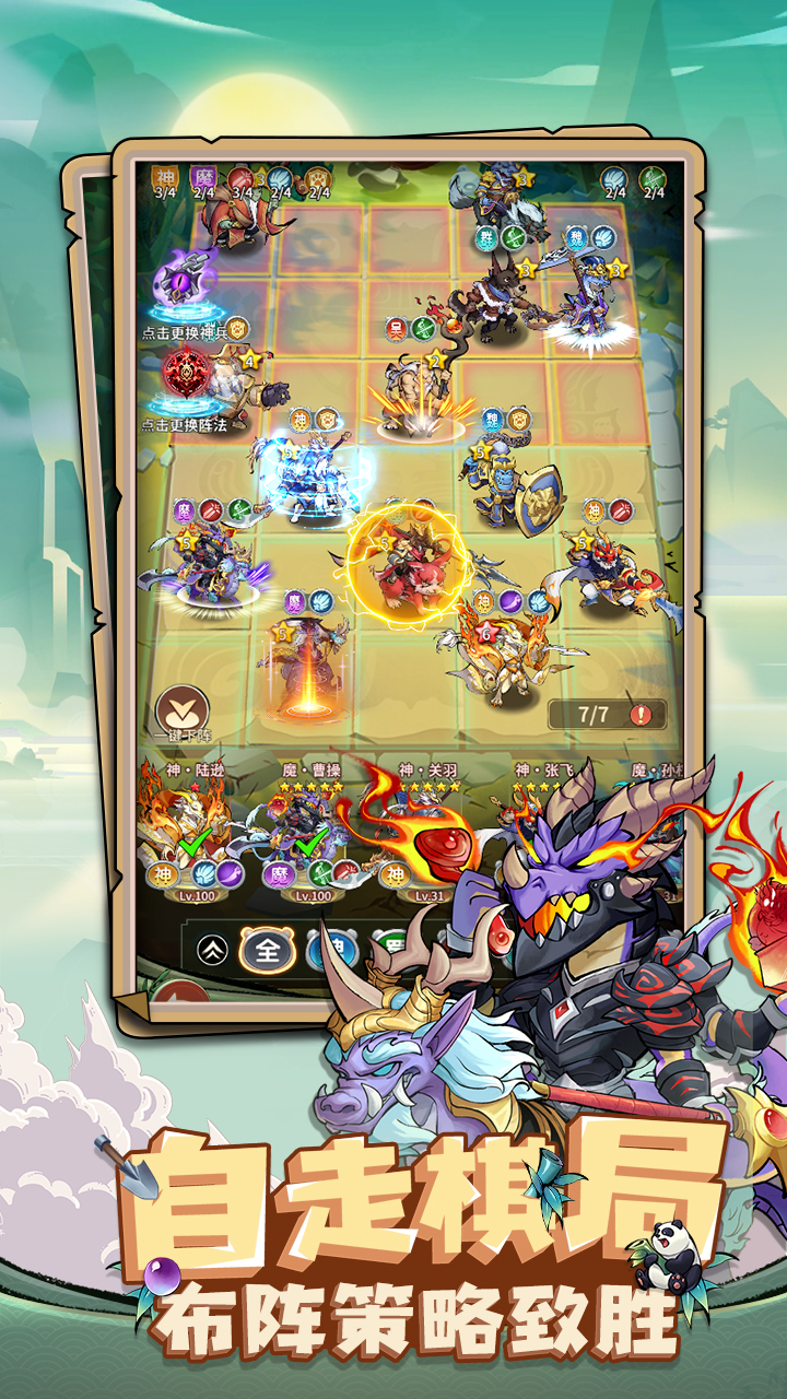 独创6x5布阵,颠覆传统策略卡牌玩法!自由变换站位,探索万变阵型,以奇制胜!