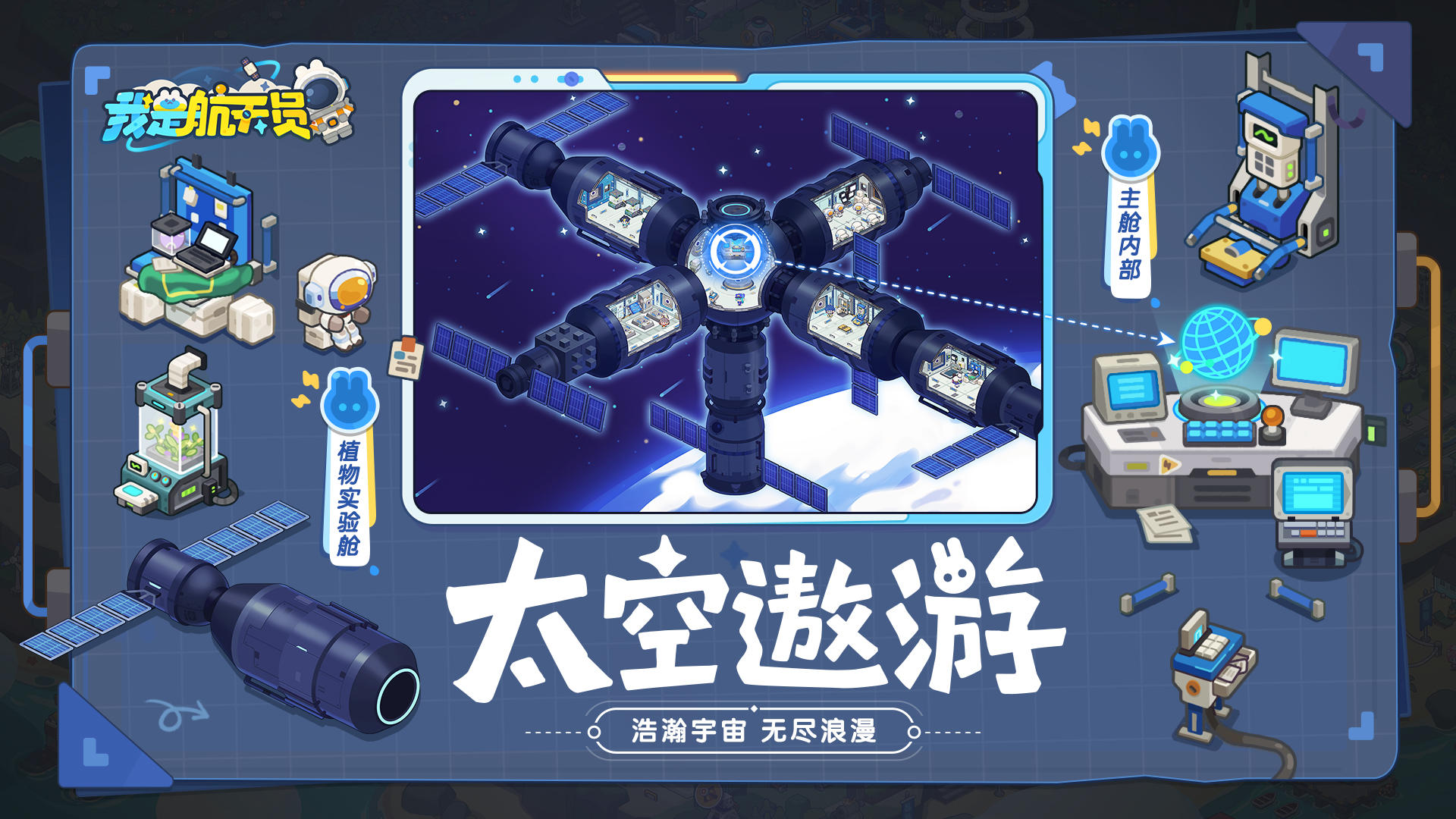 《我是航天员》是一款模拟经营类航天科普游戏。玩家在游戏中能够了解航天基地运作与火箭建造,体验航天员在空间站工作生活的太空经历,感受航天科技系统的创新加持,通过互动学习航天科普知识,了解中国航天事业的伟大成就,参与传播中国航天精神。背景设定: