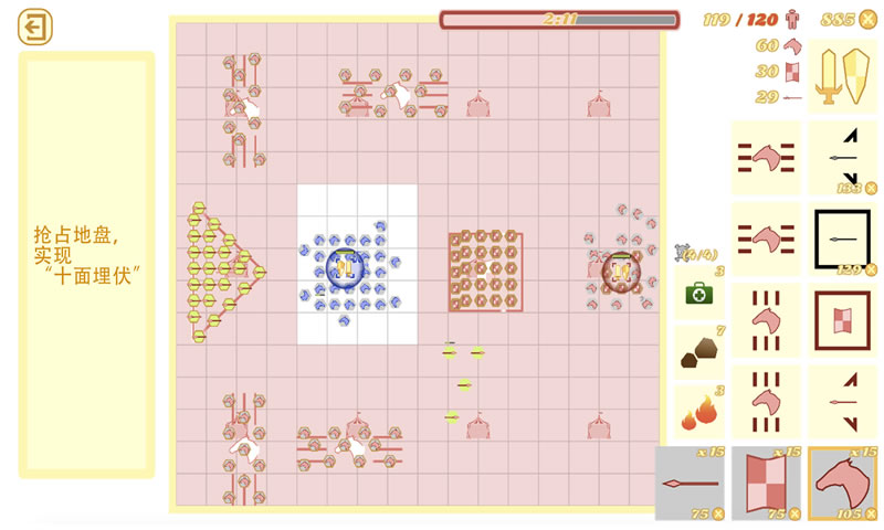 - 轻骑兵、长枪兵会在一定距离内尝试追击敌军;