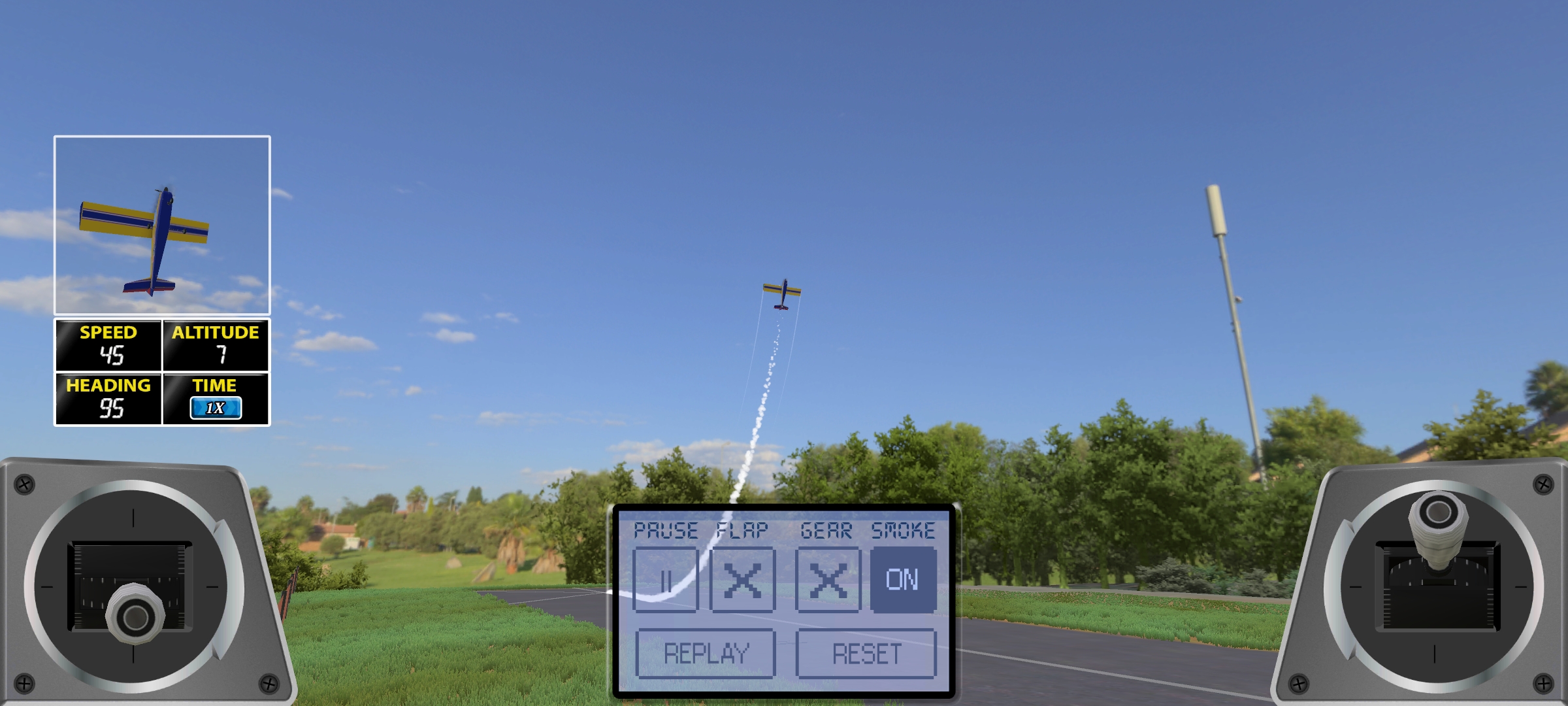 我们在屏幕上添加了完全可配置的虚拟遥控控制器,以及非常接近真实遥控飞机的物理算法。