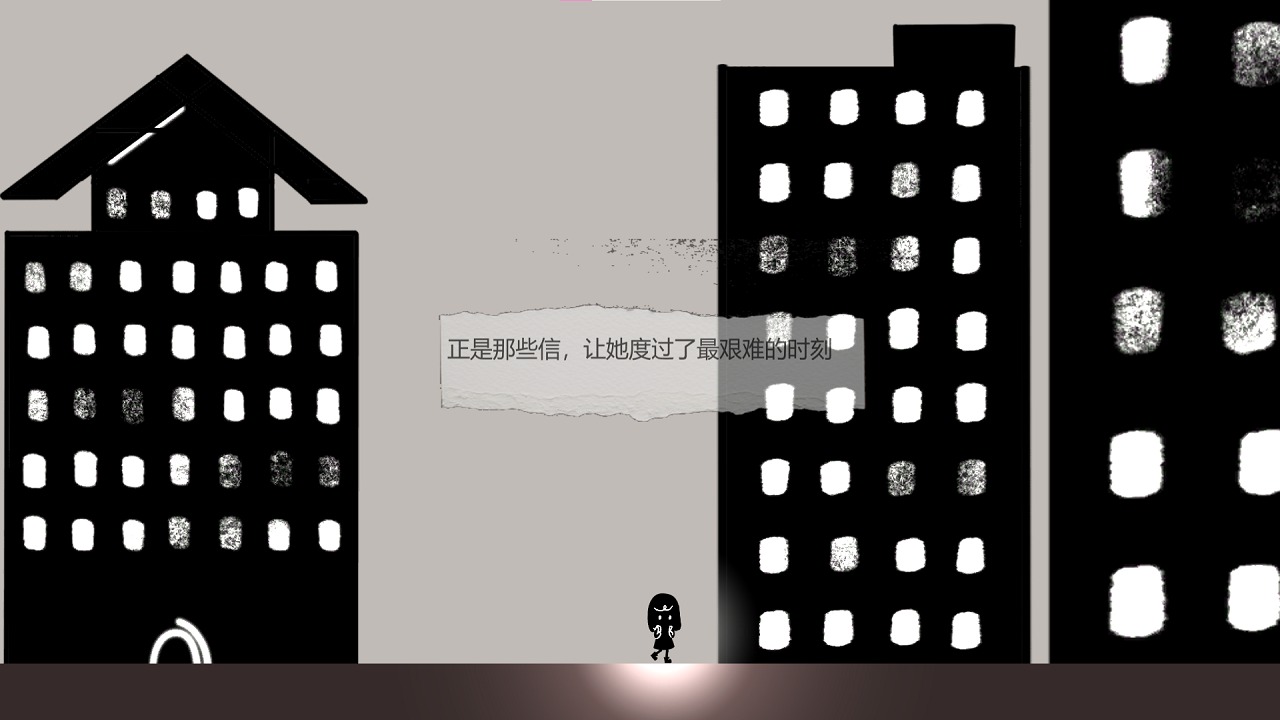 The Envelope 为单人2D横向卷轴游戏,描绘了一名小女孩的梦境,讲述了一名她在“信”的帮助下,克服了对黑暗和未知的恐惧,勇敢地踏上了寻找妈妈的探索之旅的故事。在这个过程中,“信”的元素穿插其中,一方面指引小女孩的行动,另一方面对白血病的相关内容进行科普,最终,在梦境的结尾,小女孩成功与妈妈团聚。