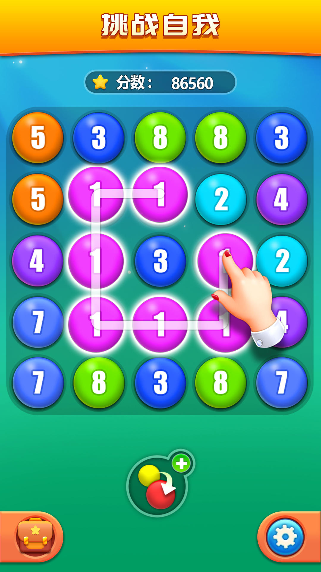 “妙手连珠”是一个令人上瘾的放松数字泡泡合并益智游戏。连接相同编号的气泡以合并它们!创建绝佳的链接并将它们合并以获得更多积分!挑战你的头脑并解决难题,然后你会发现它们简单而令人兴奋!