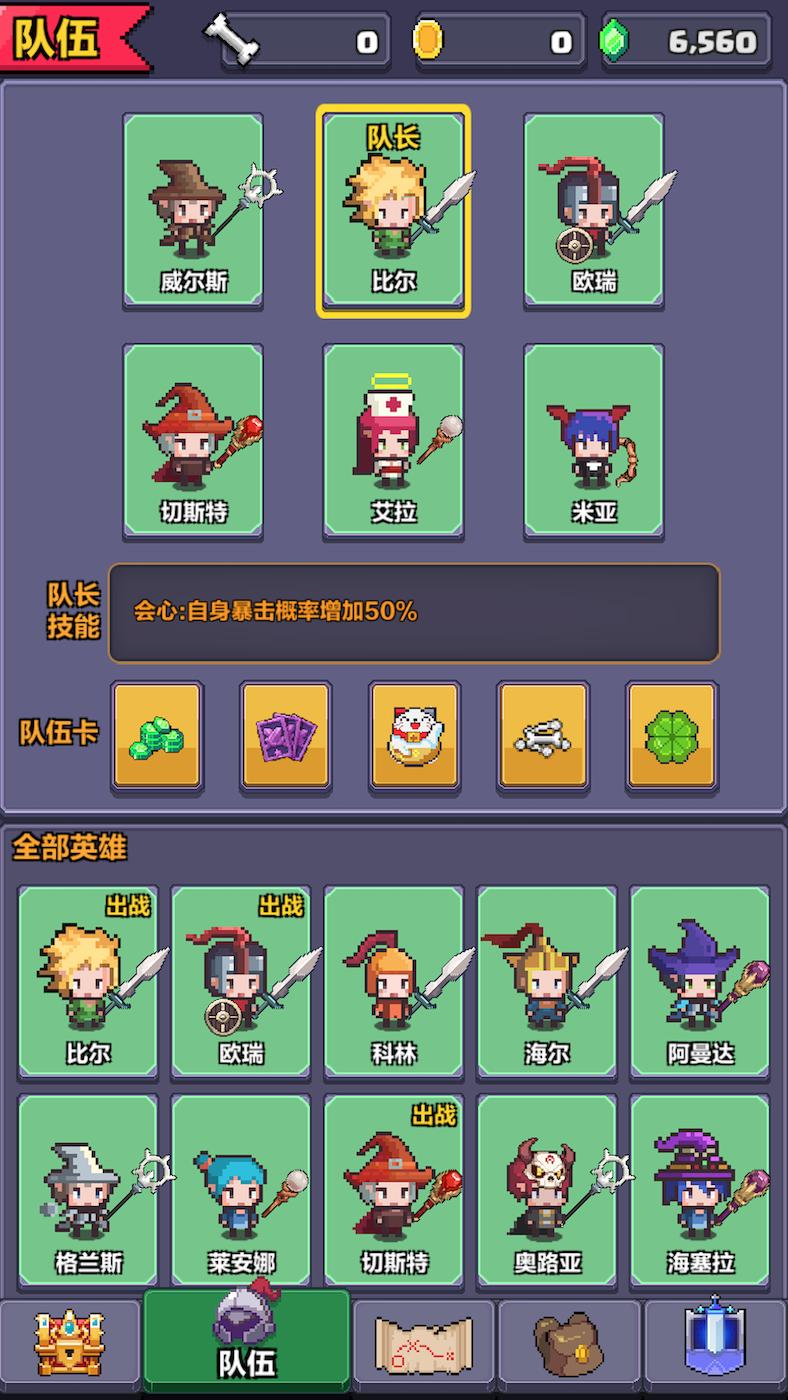以英雄组队为游戏特色,各职业英雄都有各自的特点,每个英雄都有一个队长技能。组成英雄小队后,可进行闯关冒险。每打败一关敌人,可从3个随机技能选择一个, 技能效果可叠加,最终挑战boss,获得胜利。问题反馈和交流QQ群:688595102