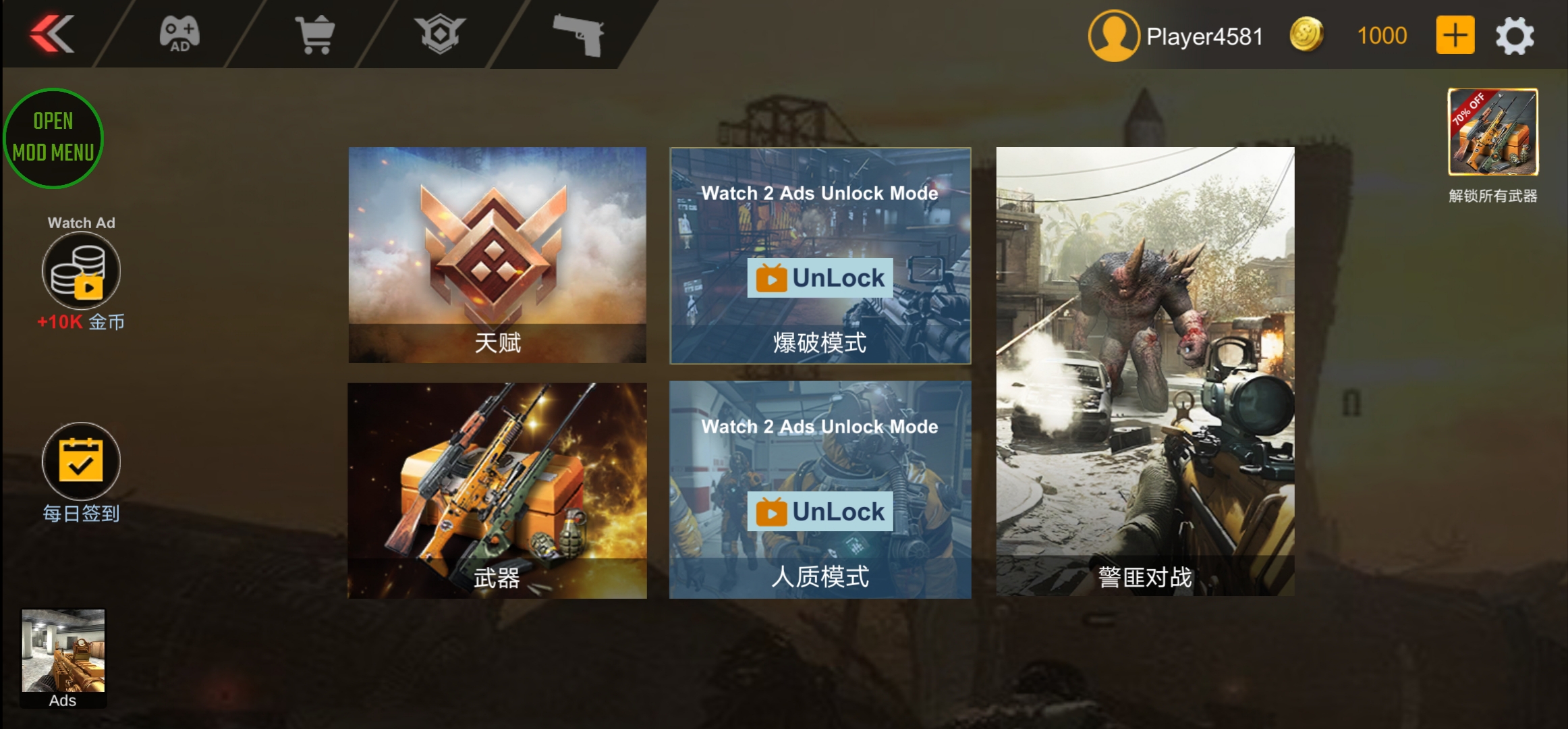 多人角色格斗游戏,一个场景中最多支持5人角色。你可以训练自己射击技能,提高你的武器操作能力。只有良好的操作控制在战争游戏任务中才能发挥各种武器的威力。在该第一人称射击游戏中,你可以解锁和打开所有场景。作为团结成员发挥士兵突击的作用。动作射击游戏中,瞄准和射击,与现代敌人强悍士兵,突击士兵,指挥官战斗,只有使用你的枪炮射向敌人,击杀敌人,让我们开始游玩世界最伟大的军事攻击游戏。向国家军队发号命令,勇敢战斗。现代射击战斗突击游戏,第一人称瞄准和射击,动作射击攻击战役游戏。在逼真的3D环境中触发狙击枪和突击步枪,疯狂射击,然后获得更多的项目和武器的奖励。