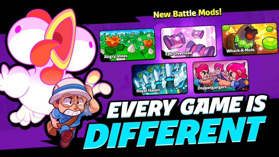 数十种不同的随机事件、千变万化的角色阵容,使得每场对战都独具特色!追逐战利品哥布林、打碎皮纳塔、招募皇家幽灵对付对手,还有更多趣味玩法!每场对战都有机会尝试新战术、发现新惊喜!