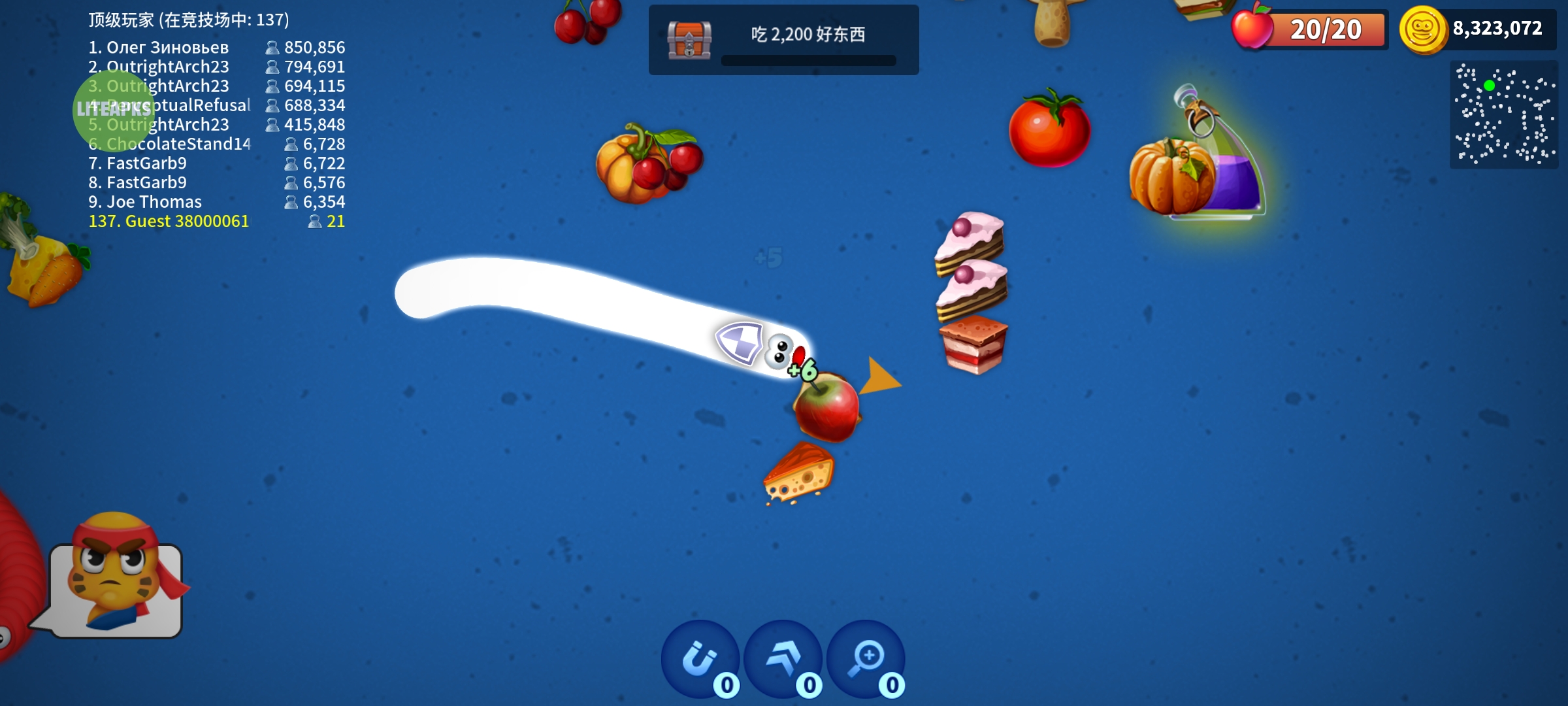 在竞技场上,您可以找到增加蠕虫力量的奖励。利用这些机会-奖金将帮助您实现目标。