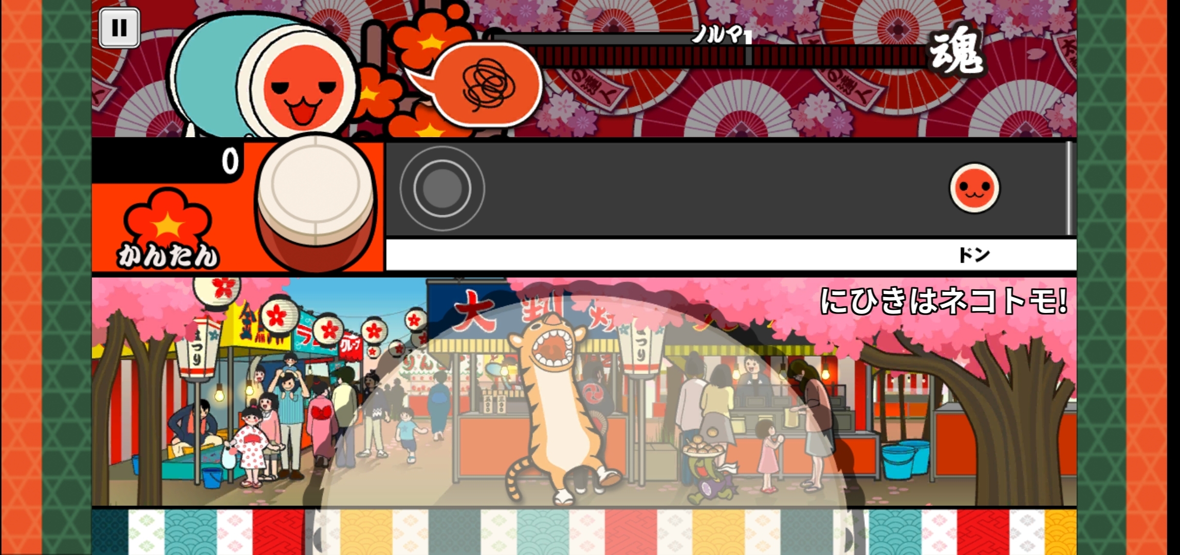 当从屏幕右侧流出的音符相互重叠时,您可以通过用手指轻敲鼓的表面、边缘或鼓以外的背景来使鼓与歌曲的节奏合拍.