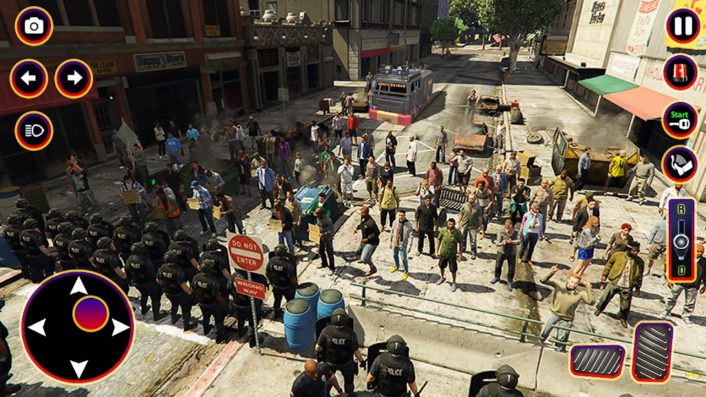 阻止暴徒摧毁你的美妙城市和拆除公共财产。他们试图罢免民选政府并制造混乱。选择您选择的警车,开始驱散抗议者和灭火的旅程。使用防暴警车执法,镇压城市抗议活动。在这个防暴警察驾驶游戏中,从普通汽车、防暴警察卡车和老式警察巡洋舰,到更具异国情调的超级跑车和跑车、1122 灭火器卡车,您将有多种车辆可供选择。