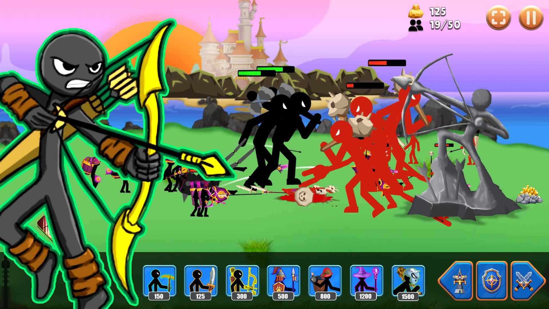 使用策略和简笔画的魔力摧毁对方国家的雕像:矿工、剑客、弓箭手、斯皮顿、庞巴迪、魔法杀手(巫师)和巨人。坚持战争遗产与火柴人战斗游戏的精彩动作惊险