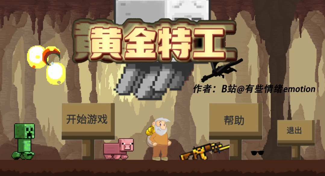 矿洞被不知名生物撞击,即将坍塌,玩家需操控黄金特工,端起AK47,消灭沿途怪物,钩取金矿,最后击杀末影龙,完成逃生。