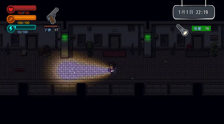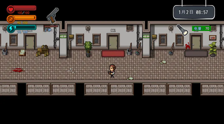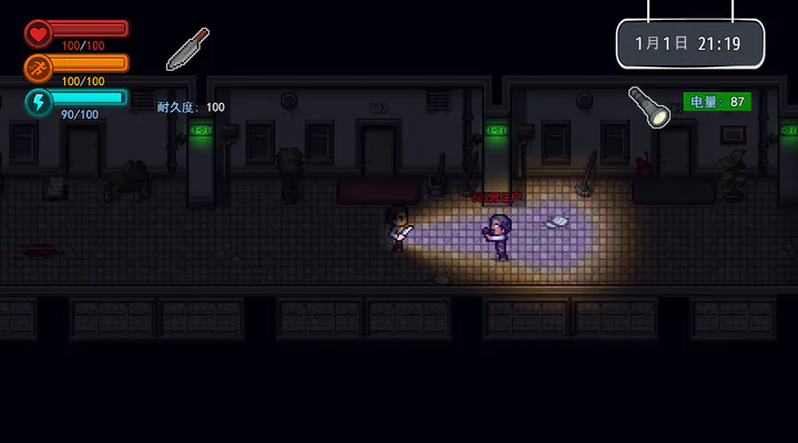 《疫地求生》是一款像素风丧尸末日题材的生存类冒险闯关游戏。