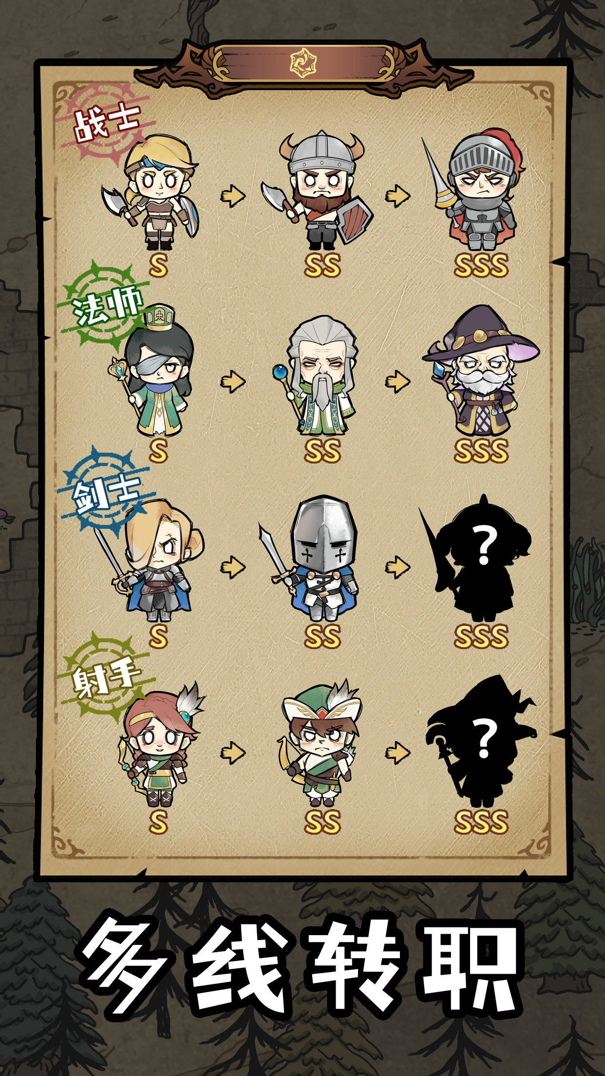 4. 转职--让符合条件的勇者在专职神殿进行转职,可得到更高阶的职业且获得更强大的属性和技能。