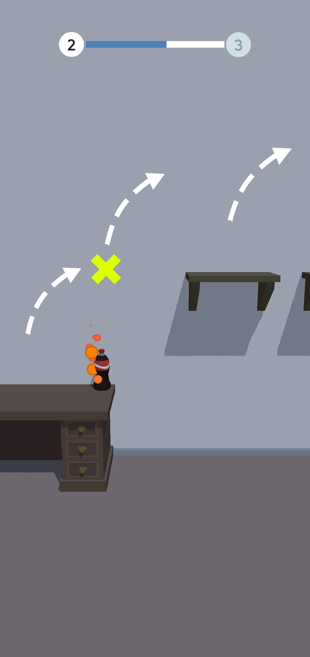 这是一款非常出色的休闲益智手游戏,玩家可以在此游戏中体验装瓶的乐趣。游戏非常简单,单击屏幕上的瓶子即可翻转,使其可以稳定地落在下一个平台上。