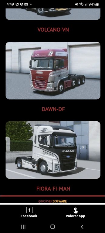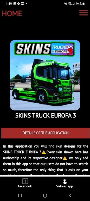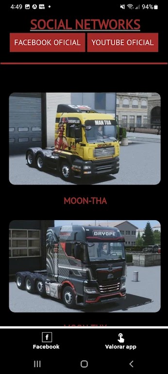 欢迎使用此处的应用程序,您会在游戏中找到许多适用于您的卡车的皮肤。 该应用程序有一个非常简单的导航菜单 所有下载都是通过直接链接非常容易下载。