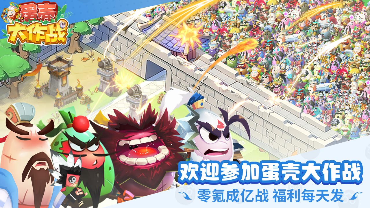 《蛋壳大作战》是一款Q萌蛋风放置卡牌手游,耳熟能详的历史名将、神话英雄纷纷化身Q萌蛋蛋人,用一种全新的视角带你重回历史时代,唤醒热血情怀,更有诸葛亮、大圣、关羽等隐藏角色焕新归来;神兵、符印等经典道具完美还原。游戏注重阵容搭配、英雄养成,合理换将让你掌控全局,华丽技能释放也为您带来爽快的操控体验。同时,我们调研玩家喜好,开发出多种乐趣玩法。“勇者竞技场 ”刺激连连;“狭路相逢”力争榜上有名;“蛋蛋历练塔”登塔后领略“高处不胜寒”的豪情壮志!还有更多好玩的竞技玩法带来更好的游戏体验,属于您的“决战之巅”就此打开 。一句话,不爽不是蛋蛋人!