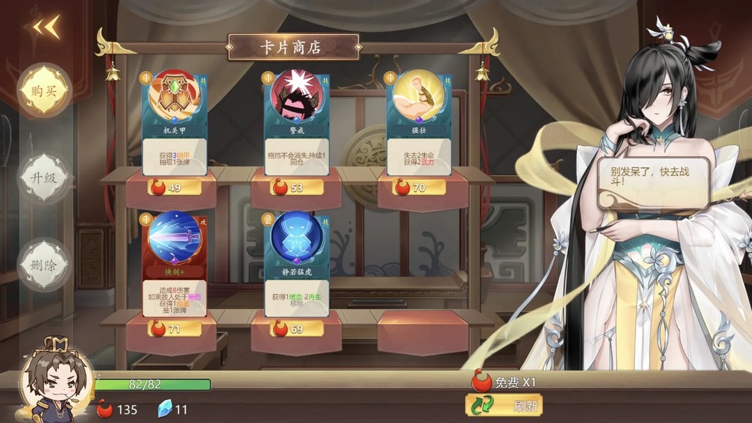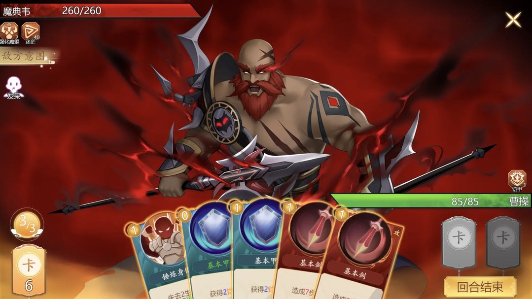 战斗界面: 每局仅1个敌人,避免打牌时指定对象的麻烦,可以超畅快甩牌。