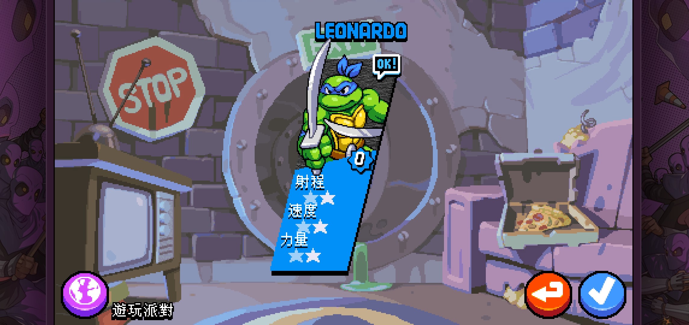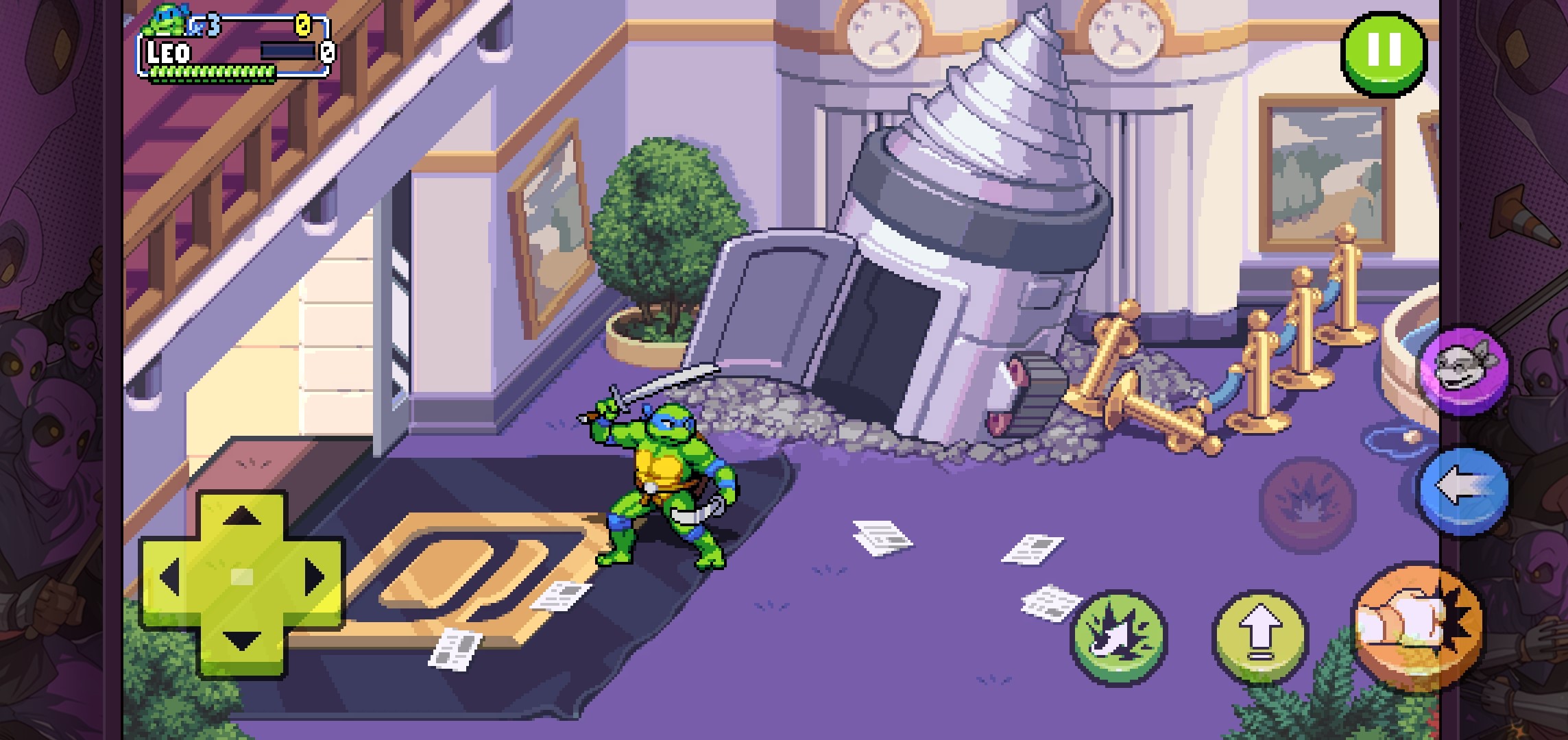 体验这款 80 年代风格的精彩清版动作游戏,与莱奥纳多、拉斐尔、多纳泰罗和米开朗基罗等老友一起惩奸除恶。神龟出动! 化身精壮有力、身怀绝技的绿色忍者神龟,挫败朗格和施瑞德的最新丑恶计划!这款制作精美的复古清版动作游戏重现了《忍者神龟》的众多经典格斗场景。使出凶悍的忍者连环招式,逐一破解十几个关卡,击败巴克斯特·斯托克曼、泰瑟兰顿等一众宿敌!游戏特点:与《忍者神龟》的经典角色一起通关,包括忍者神龟英雄莱奥、拉夫、唐尼和麦奇,也可选择新增游戏角色爱普、斯普林特师父或凯西·琼斯!在传统游戏中运用全新的超级格斗方式。在精彩绝伦的故事模式下,开启一场崭新的冒险之旅。穿越时空,感受 80 年代的怀旧设计,包括复古的全彩像素美术设计。聆听由泰·洛佩斯制作的酷炫配乐