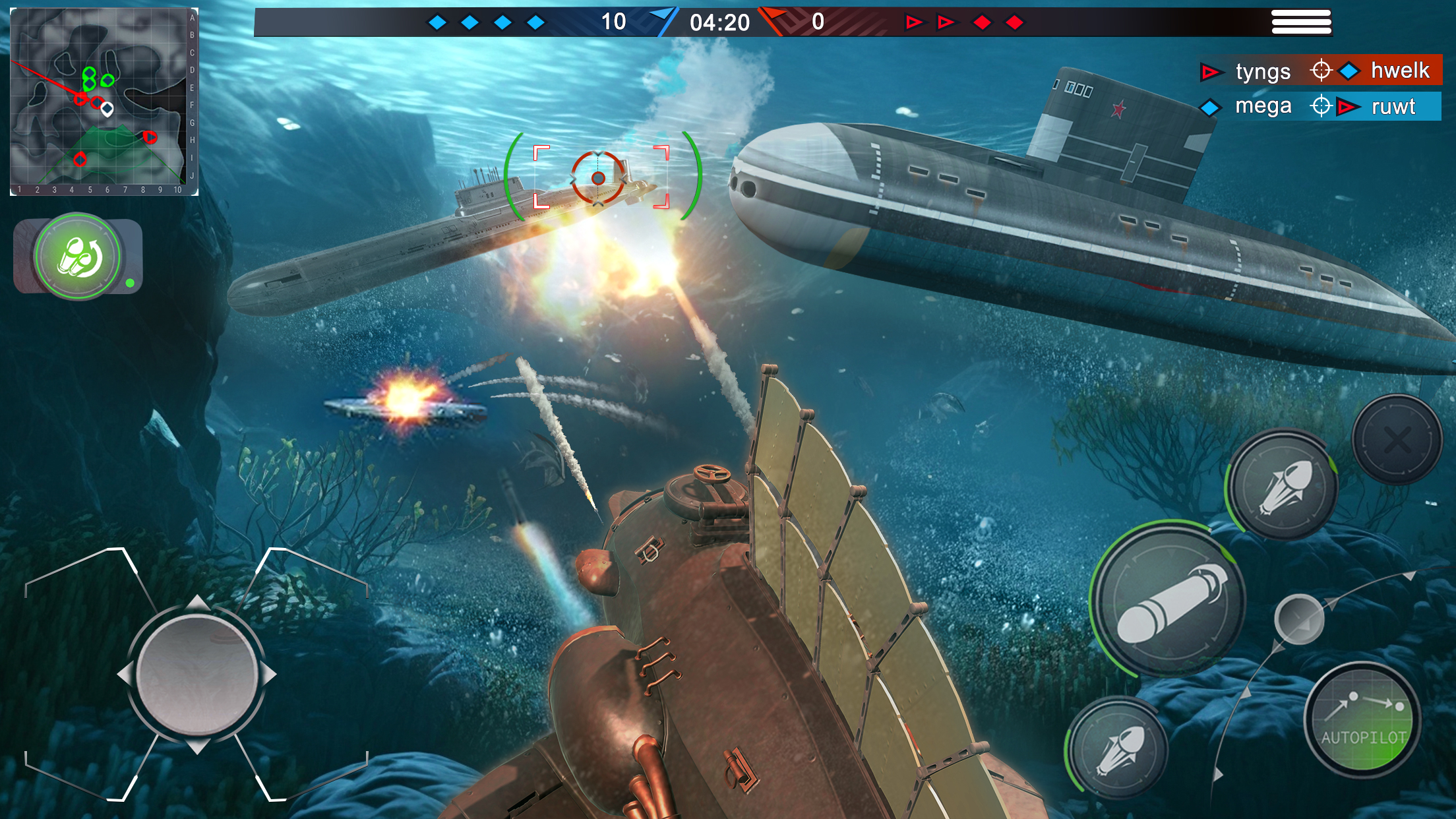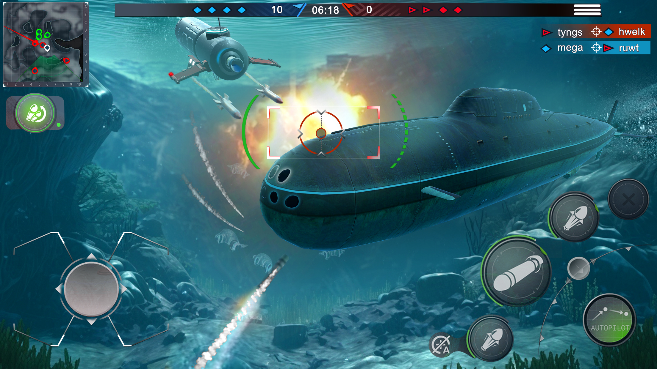 在潜水艇攻击游戏中体验前所未有的水下航行。
