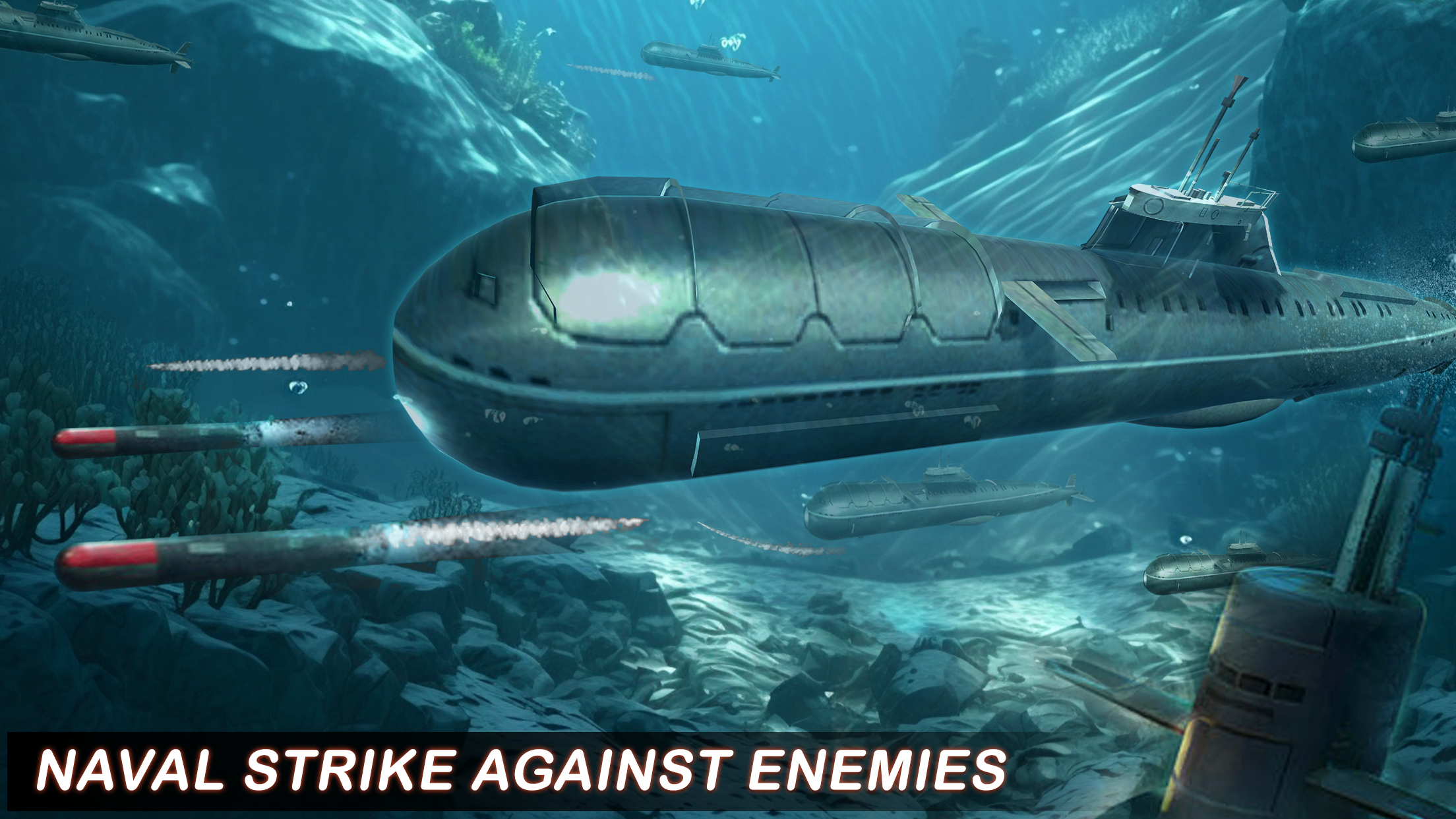 在潜艇攻击游戏中作为潜艇游轮的海军指挥官在水下体验。 感觉像参加世界革命战争,感受在太平洋沿岸击沉敌人与海军军舰的快感和兴奋,避免接触海洋雷区中的任何地雷,否则剧烈爆炸会击沉现代战舰的潜艇游戏 潜艇攻击游戏中的深海边缘。 在这艘军舰中享受在水中肆虐的乐趣,这是终极军事秘密武器,可以在海军游戏中完美地瞄准和攻击海上和空中工艺品。