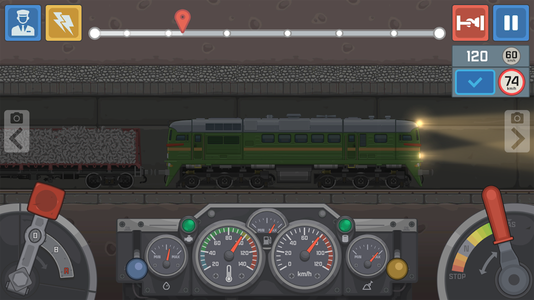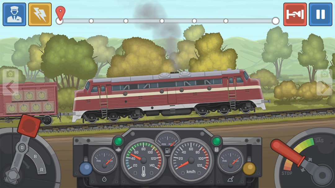 美丽的程式化的2D图形,动态的天气变化和先进的火车组成管理等着你。在途中,您将征服各种各样的地方的元素和基础设施问题,如:沙漠,城市,森林,草原,山脉等等。尽快签一份合同,装载货车,选择目的地,启动引擎,沿着运气的轨道前进!