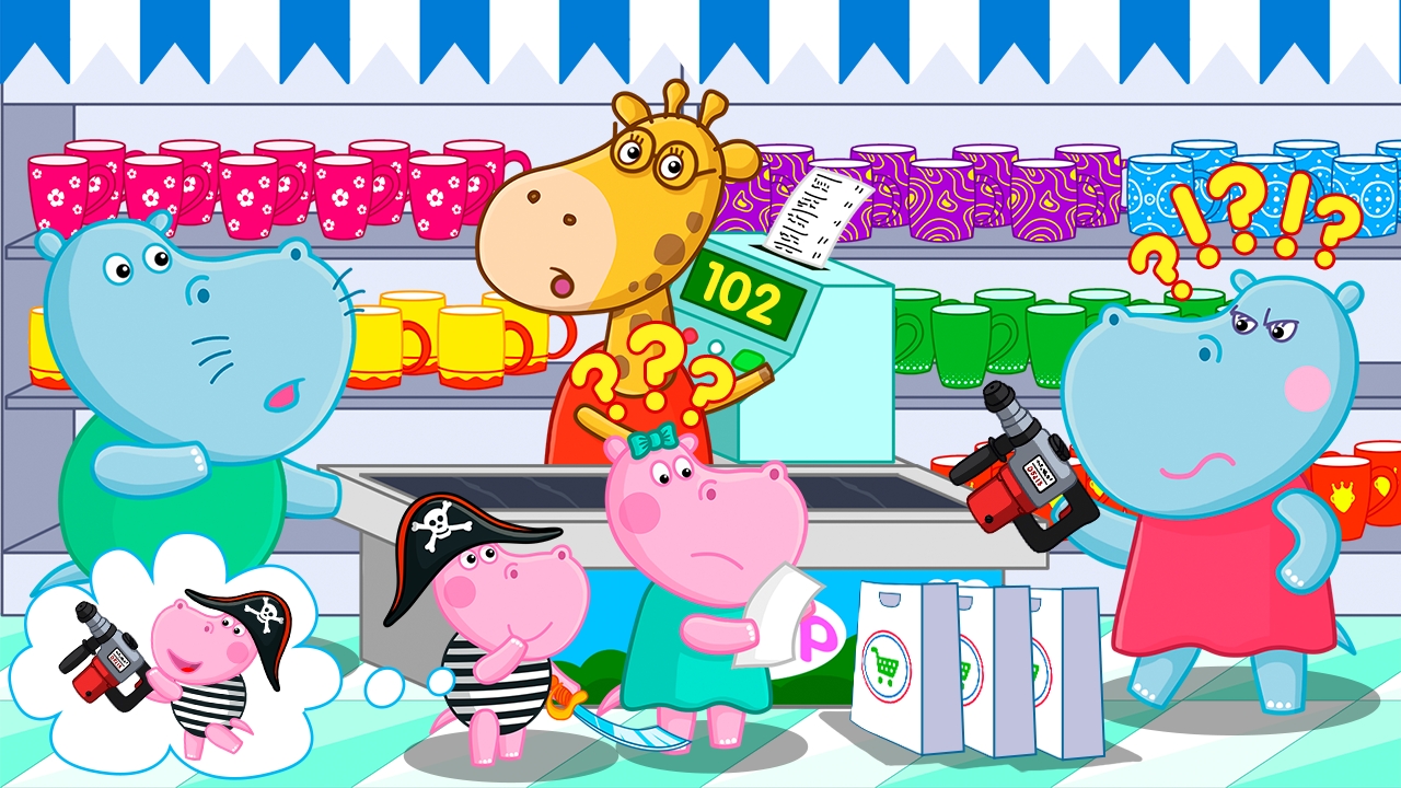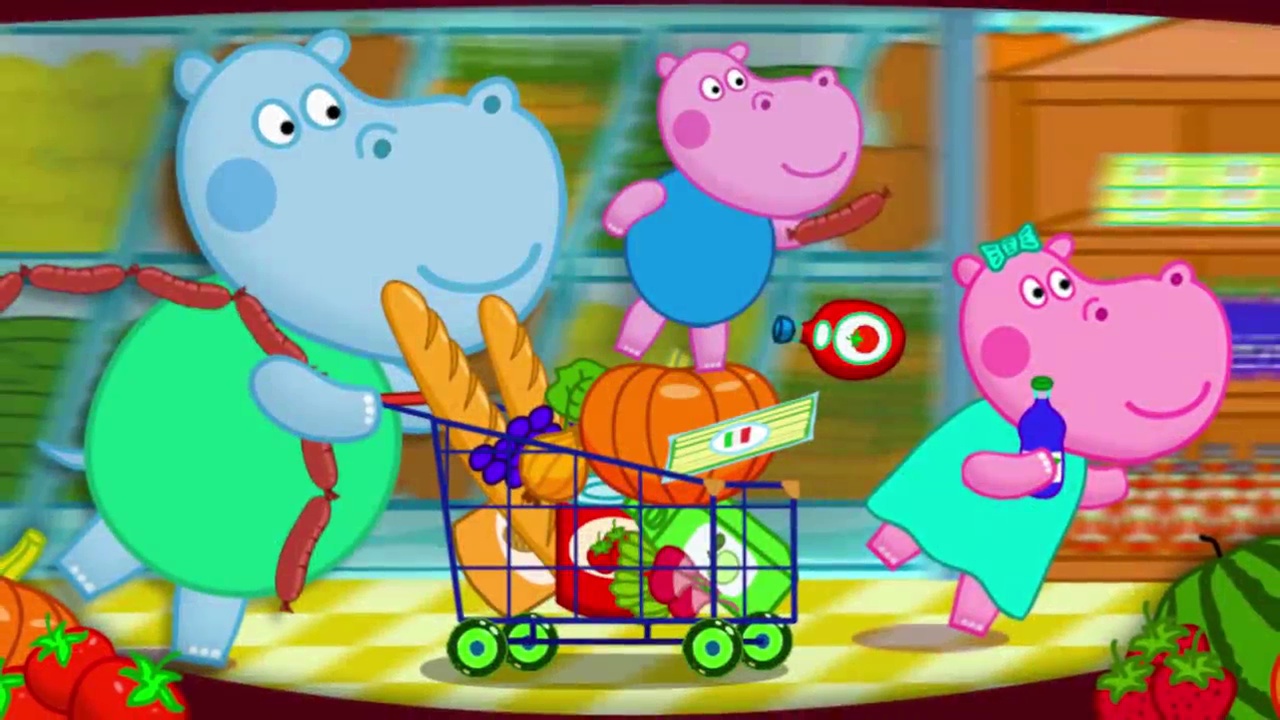 然后河马与她的爸爸和小弟弟去收银台支付货款。毕竟你会遇到妈妈,她会检查购物清单和你买的所有东西。而且不要买任何额外的东西。收集所有5颗星,妈妈会很开心!