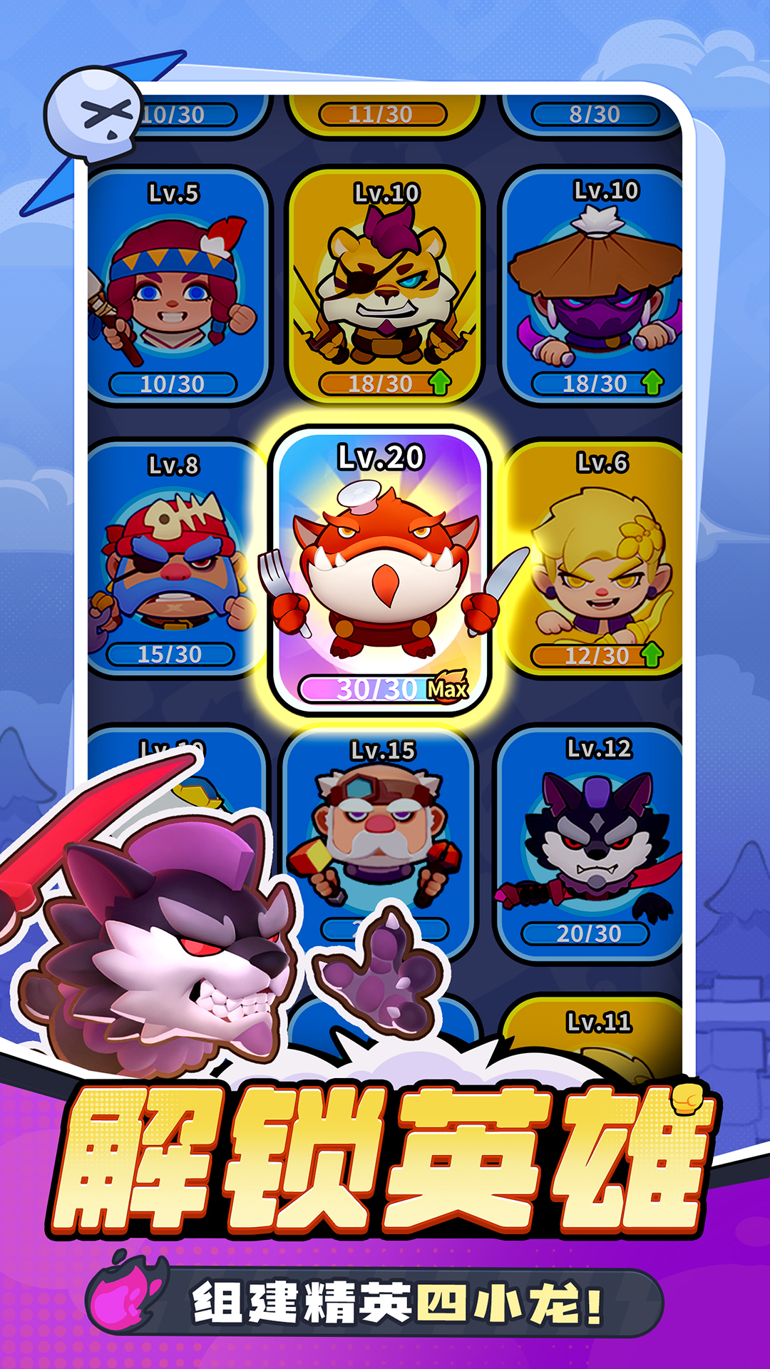 • 40+可爱英雄,每位英雄拥有专属的技能,前往组建你的精英4人小队!