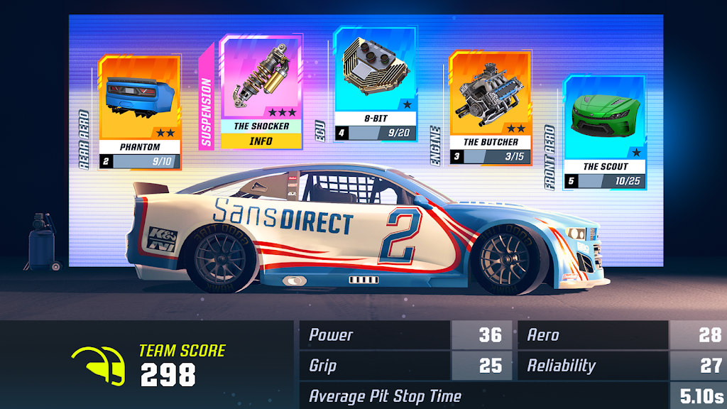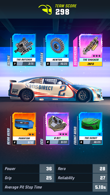 招募和训练 Stock Car 司机,以创建您的终极团队,并配备独特的定制涂装和详细的汽车调教。