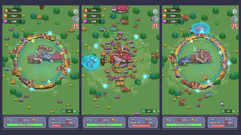 🔪? Roguelike 元素:游戏具有 Roguelike 元素,您需要在不同的野兽攻击中生存下来,并挑战各种历史记录。随着您获得更多食物,您将有不同的选择来提高自己的不同天赋并增强战斗能力。
