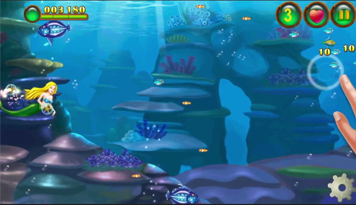吃鱼狂吃变成最大的鱼并获得足够的分数时,如果您还保持3条生命,则会出现美人鱼。美人鱼会漂洋过海放出美丽的海星,尝试跟随美人鱼吃掉美人鱼放出的所有海星以提高当前分数。
