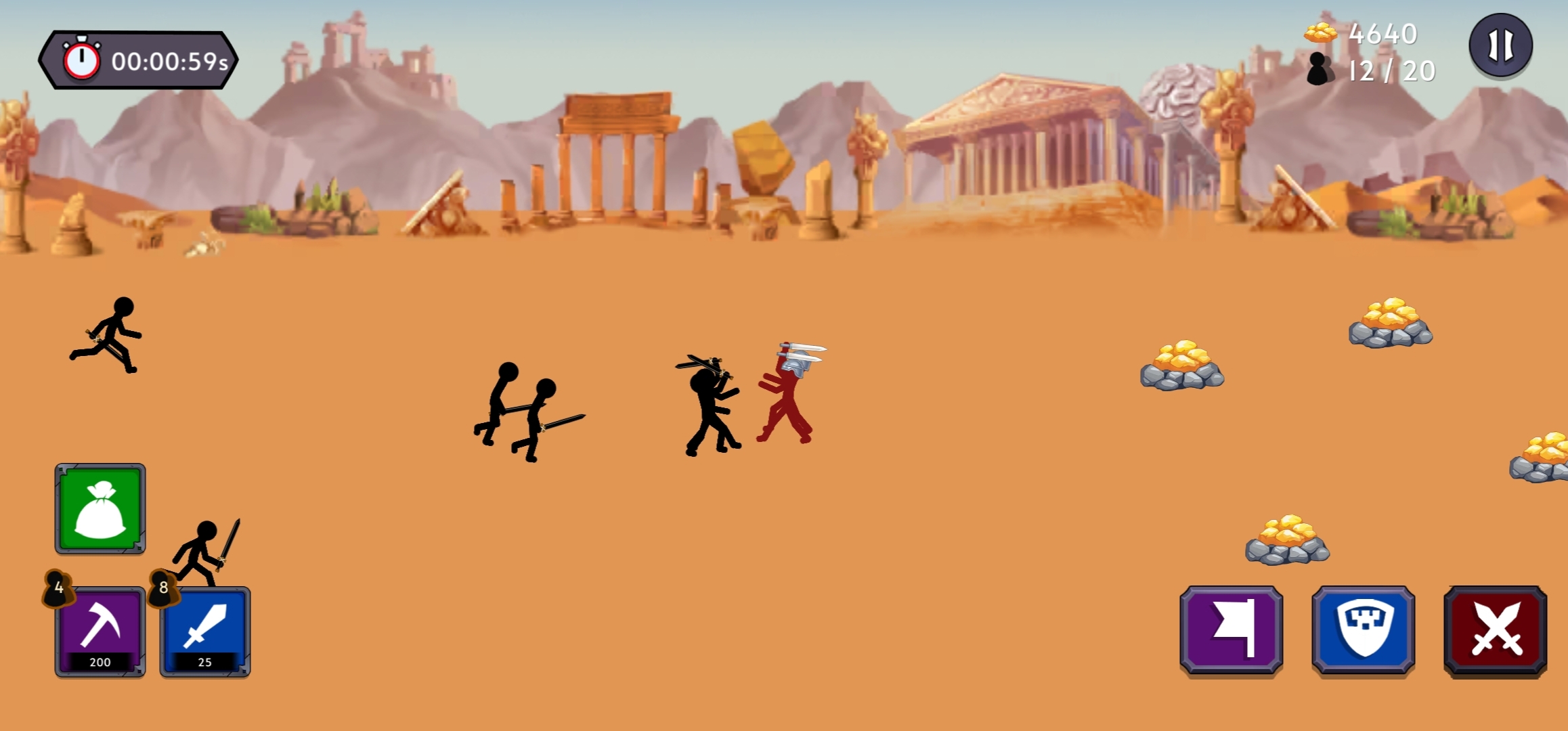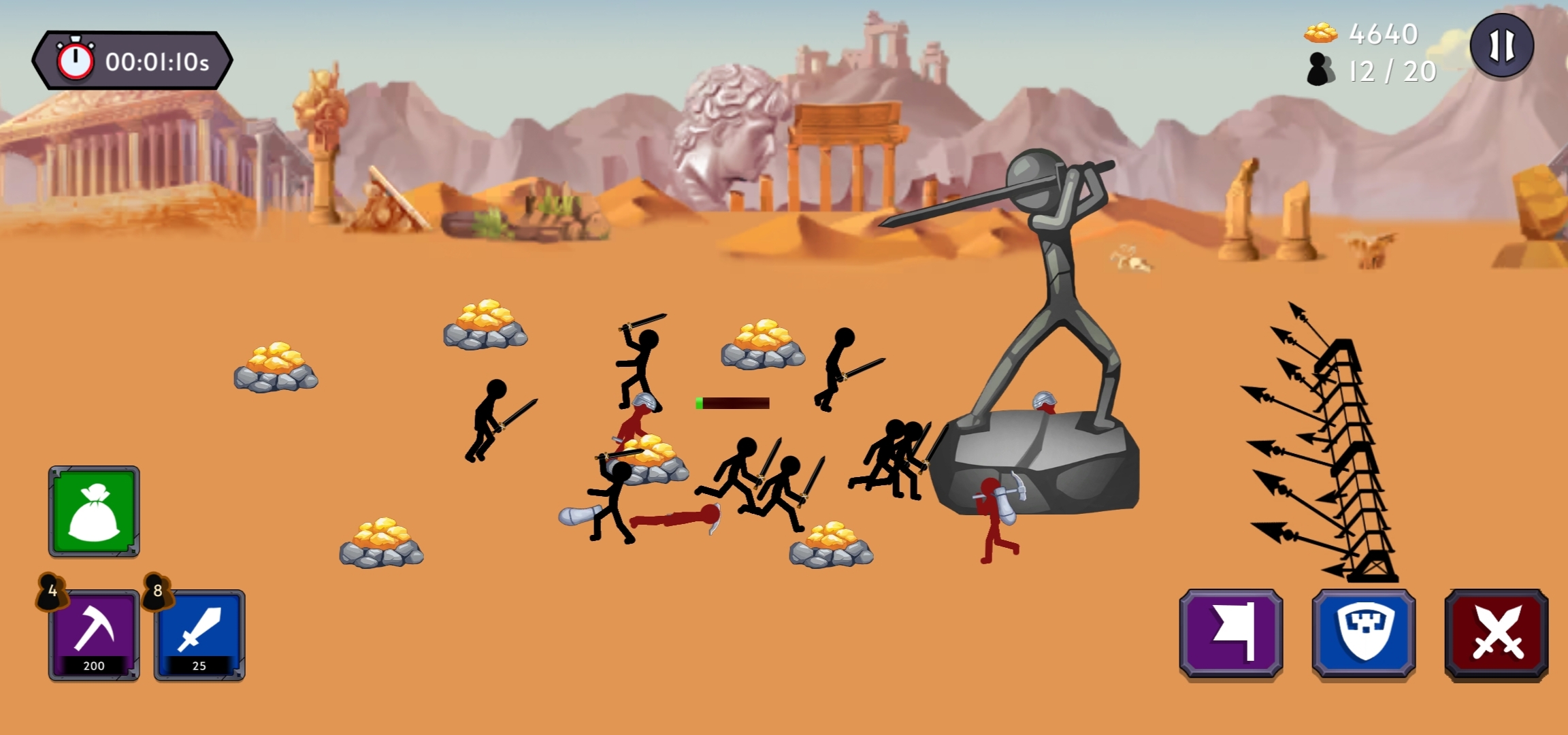 提高武装部队的战斗能力,然后使用您的策略在战争中击败敌方火柴人。