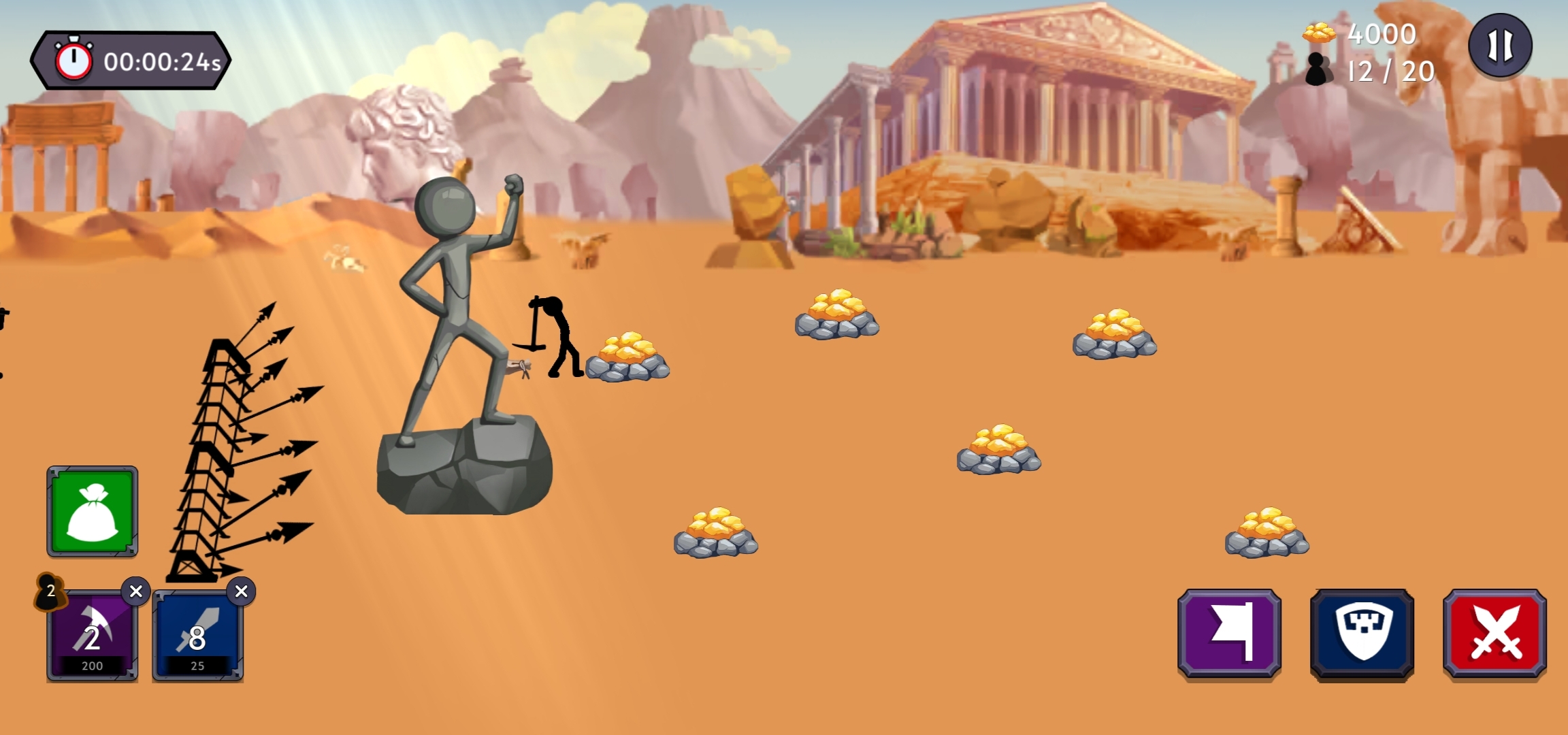 玩家完成的每个级别都将获得金币来升级他们的火柴人军队。
