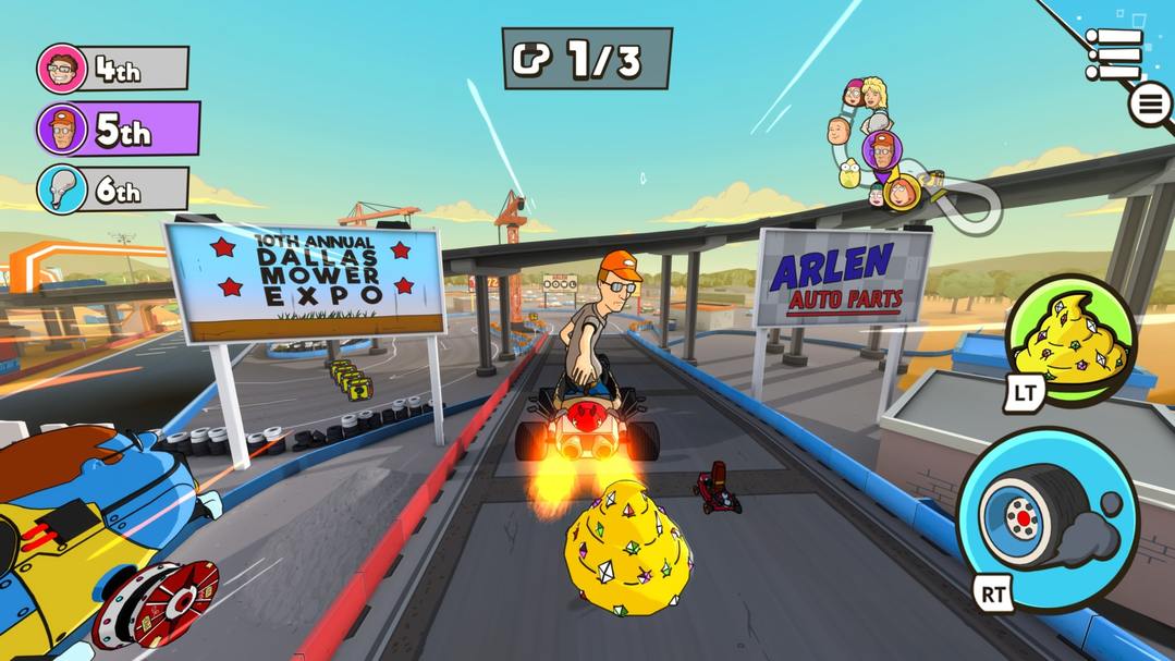 卡通赛车街机游戏扭曲的卡丁车赛车手很有趣。是的,你需要选择著名的卡通片,在那里挑选出明亮的角色,让他们控制卡丁车,这样他们就可以在狂野的赛道上展示他们的酷炫。为了帮助您完成所有 16 张地图,来自美国爸爸、家庭盖伊、山丘之王和太阳对立面的 <> 个角色将等待您。完成日常琐事以解锁新角色、车辆和自定义项。加入由八个伙伴组成的在线游戏团队。