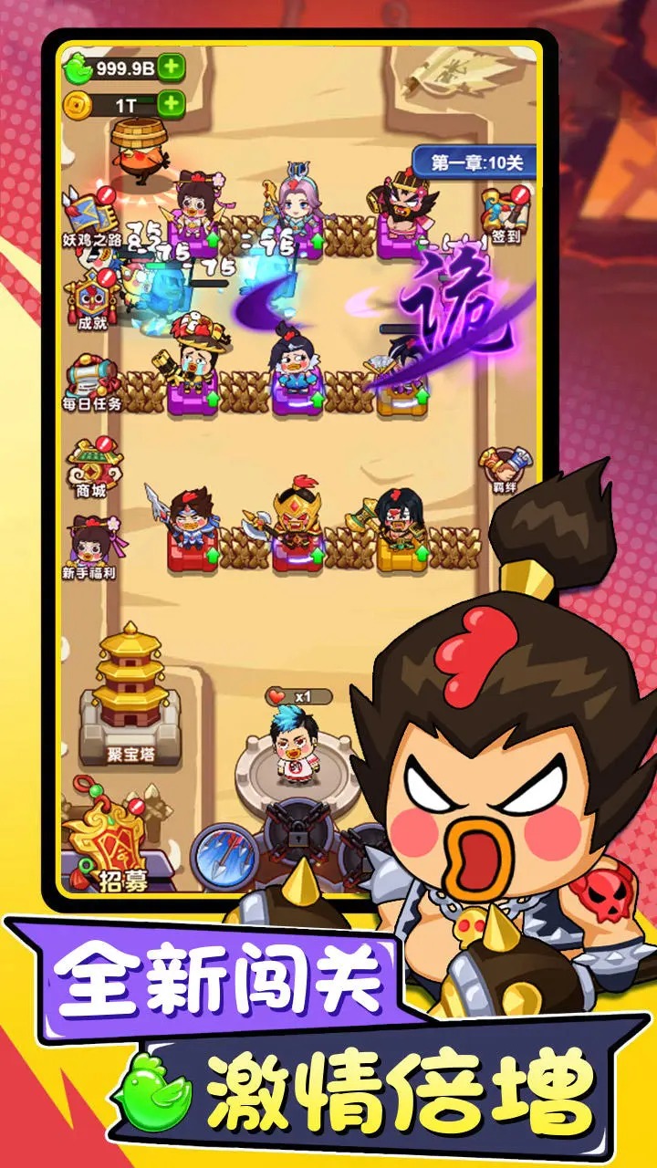 《三国战鸡》是一款三国题材的策略塔防RPG战斗游戏。以Q萌画风重新演绎三国奇遇,剧情故事丰富,关卡挑战有趣。还有众多搞怪可爱的英雄,爽快的打斗和有趣的关卡,快来一起参加三国战鸡吧!
