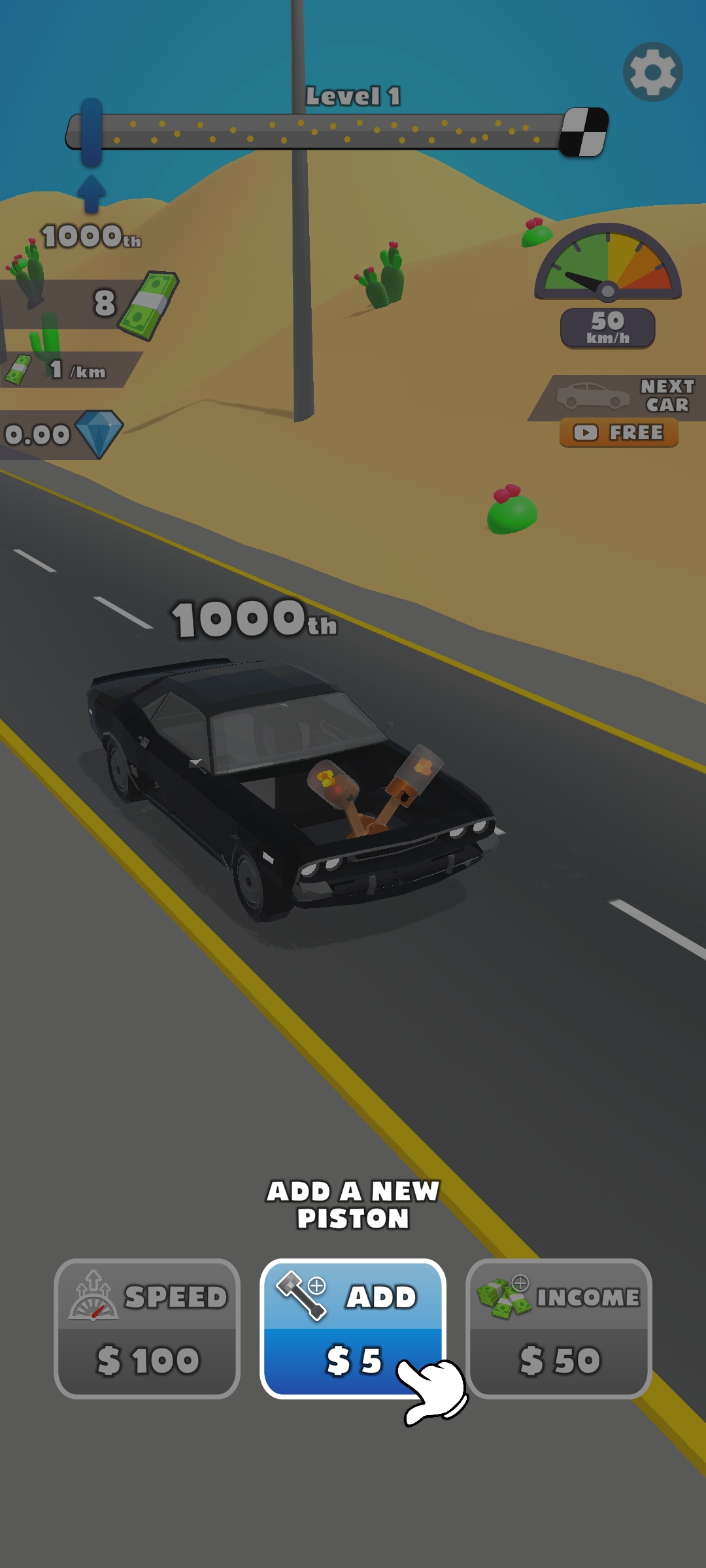 在完美的发动机活塞模拟器游戏中一边加油一边赚钱!升级您的汽车和钻石、黄金、白银和青铜发动机活塞,以赚取更多的钱!
