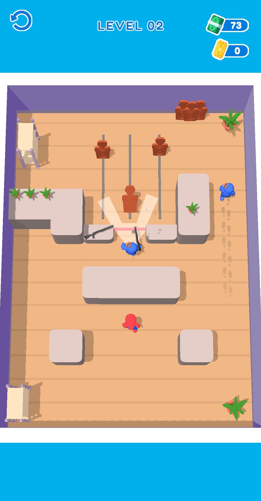 在每个级别,其他敌人都会等着你。你的任务是找到他们并像真正的杀手一样杀死他们。使用周围的物体 - 炸弹、电锯、刀、剑。按下所有开关。您一定会喜欢这种效果。避免进入相机镜头、激光和聚光灯。保密。快速攻击并逃跑而不被发现。