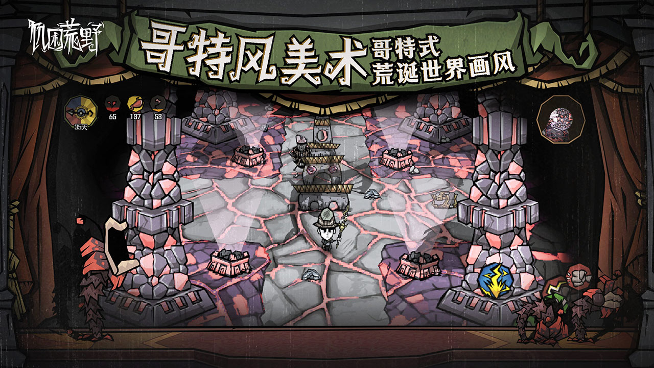 《饥荒:新家园》获得Klei正版授权,是以经典PC游戏“饥荒:联机版”为基础开发的全新沙盒生存类手游,冒险家们将从这里进入一个未经探索的奇幻世界,开启一段超高自由度的探索、挑战、生存与成长之旅。这里充满了奇怪的生物以及隐藏的危险,你将需要持续探索世界、收集资源、制作工具、击败怪物,解开古老而神秘的谜团,体验一次又一次刺激而欢乐的求生历程。你可以叫上伙伴们一起并肩作战,共同克服未来的难题,在这个自由沙盒的世界中一起战斗、收集、建设和探索吧!