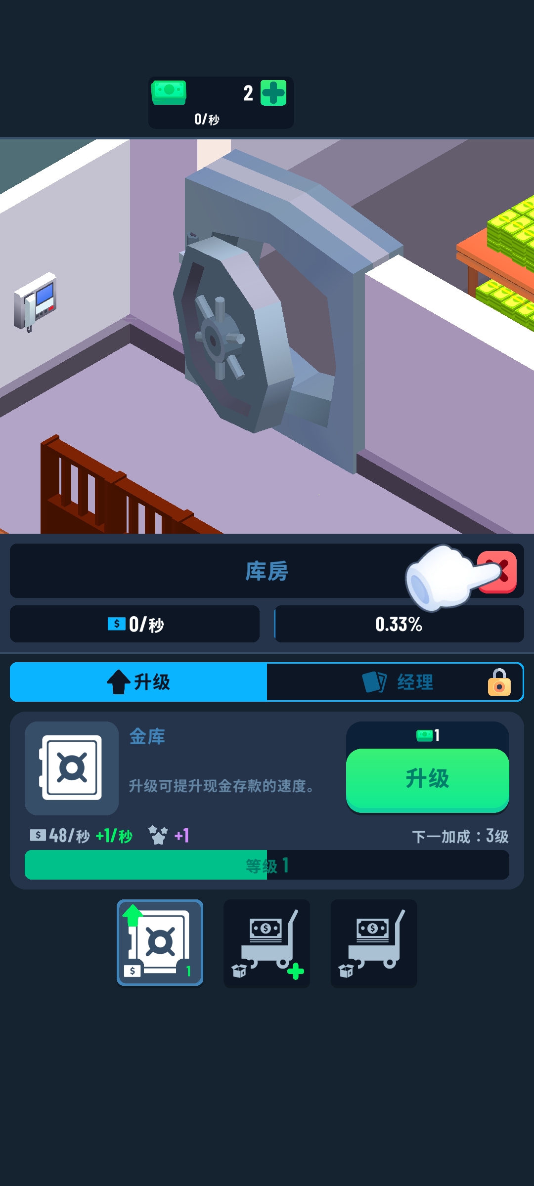 畅玩这款金钱游戏,沉浸在银行模拟器的精彩冒险中,成为一个真正的资本大佬。开展业务、印制钞票、发放贷款和信用——在这款精彩的闲置点击游戏中你能处理这一切事务。做出正确的财务和管理决策,发展自己的银行帝国。